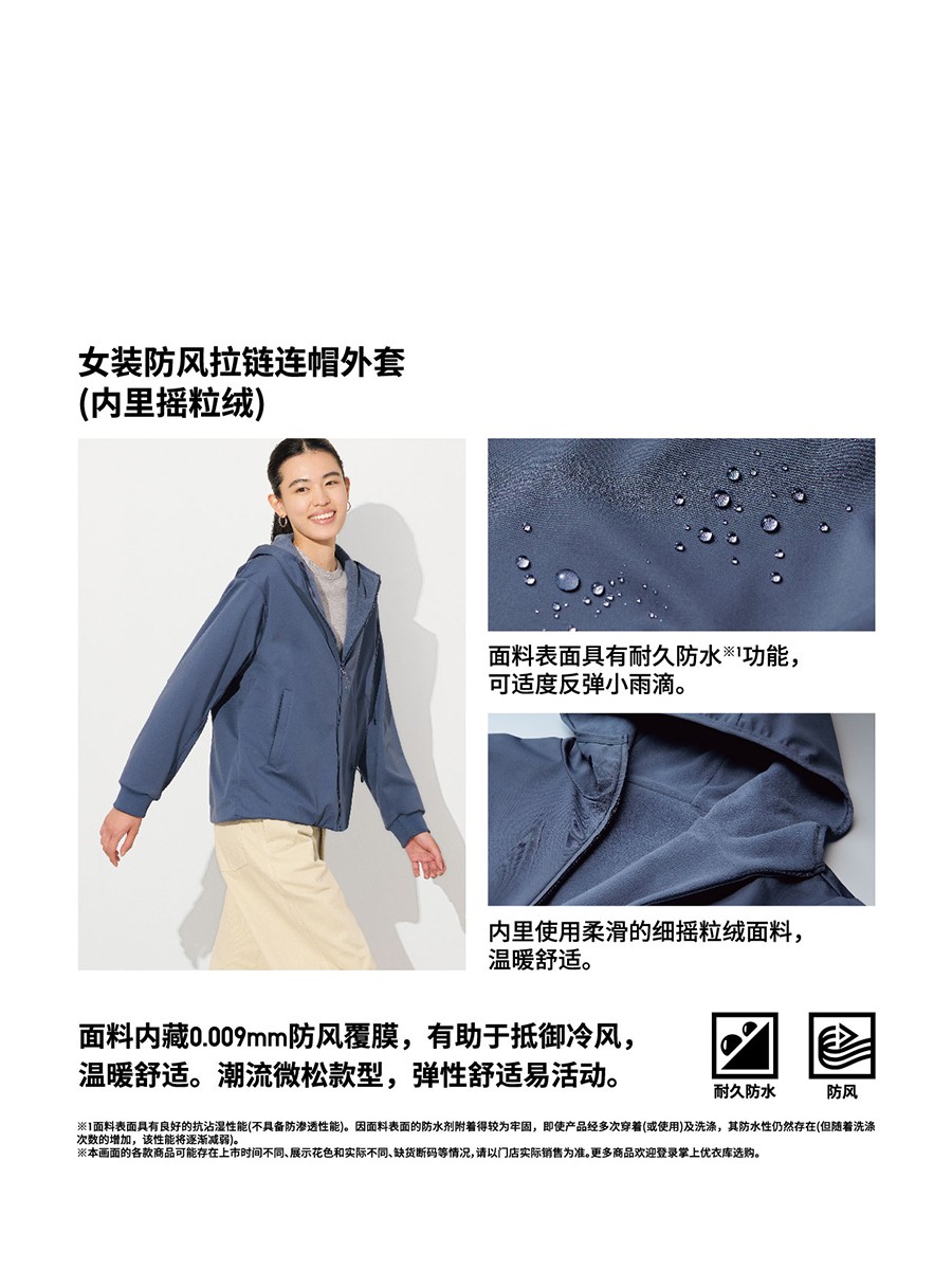 优衣库-UQ472150000 女装防风拉链连帽外套