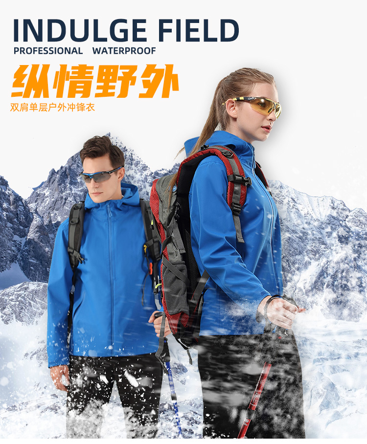 设计点:纵情野外,双肩单层户外冲锋衣。