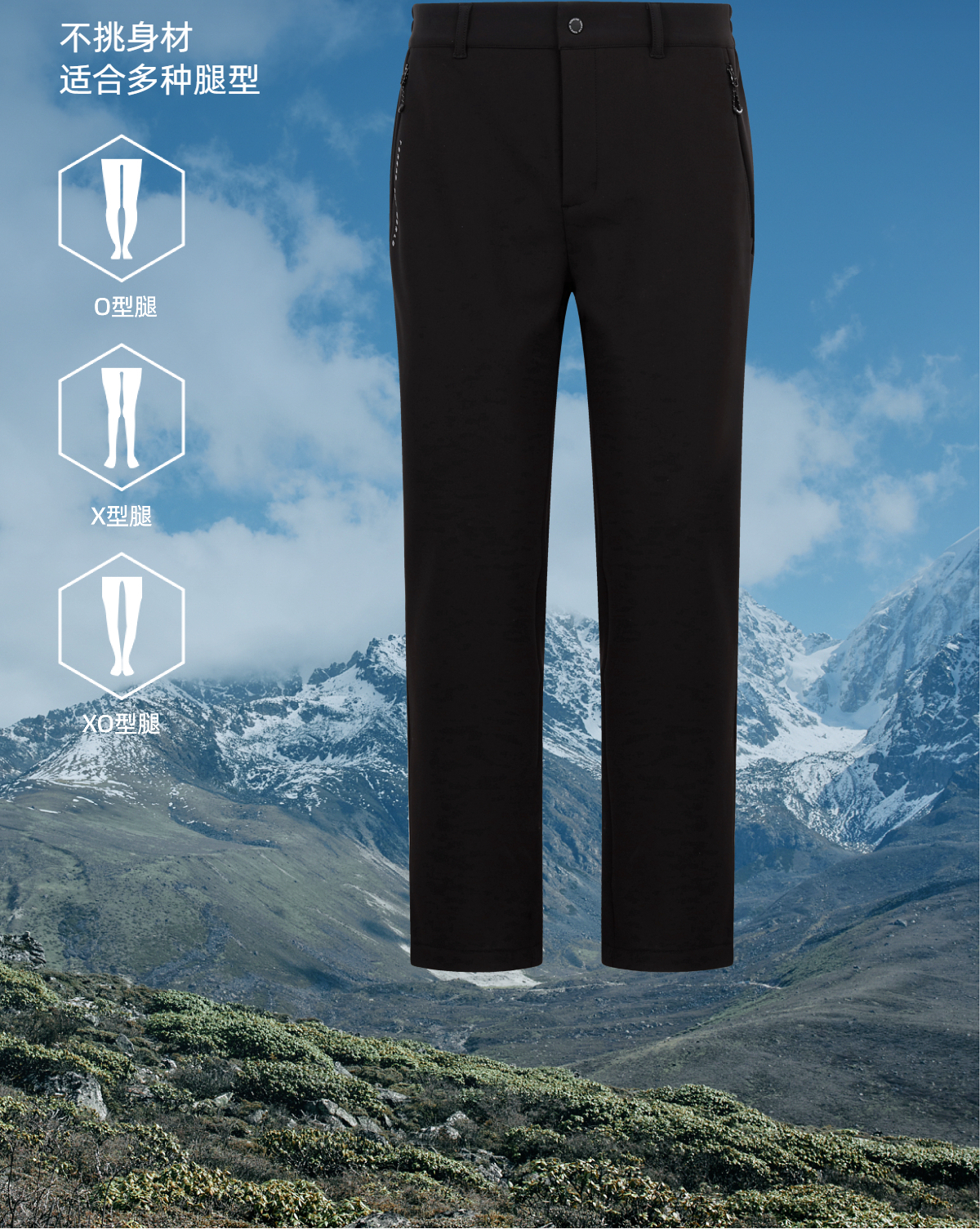 设计点:面布采用经编锦纶弹力布,具备优异的弹性,通过复合摇粒绒底布,提高了面料保暖性能,整体面料耐磨、弹力舒适、保暖。