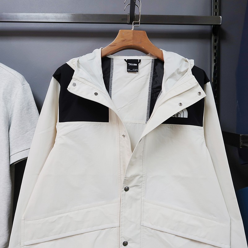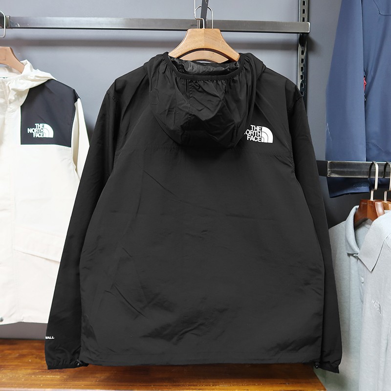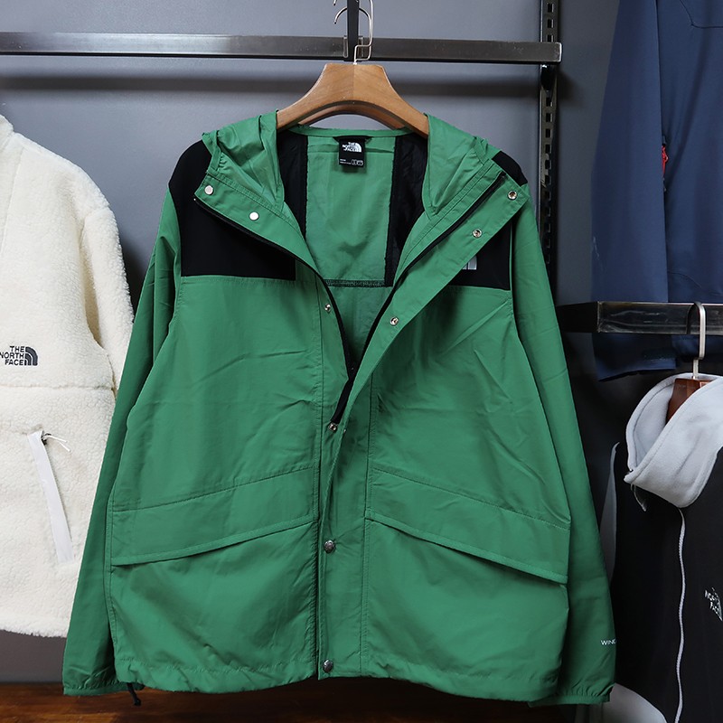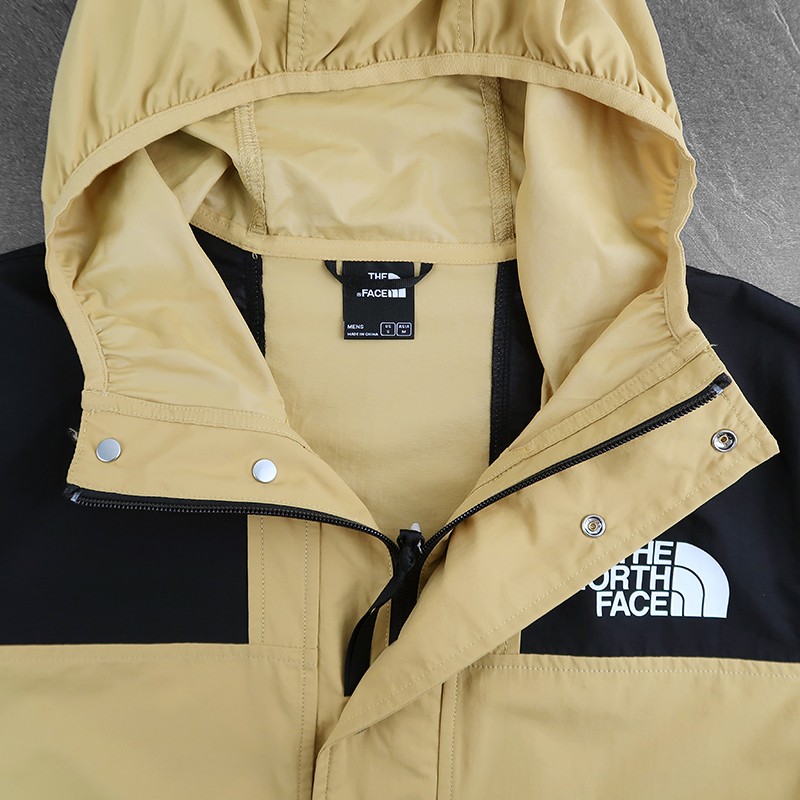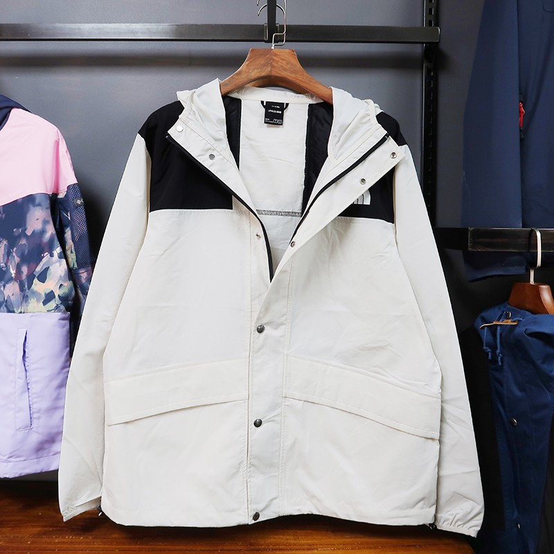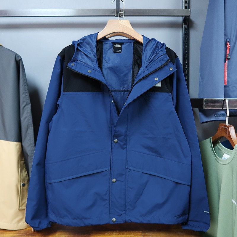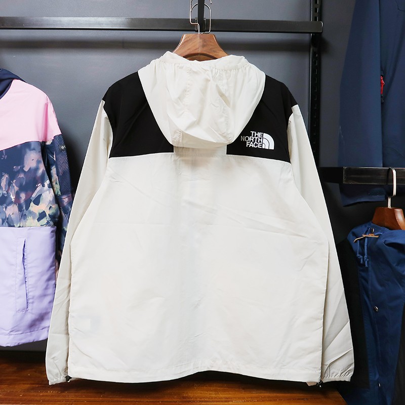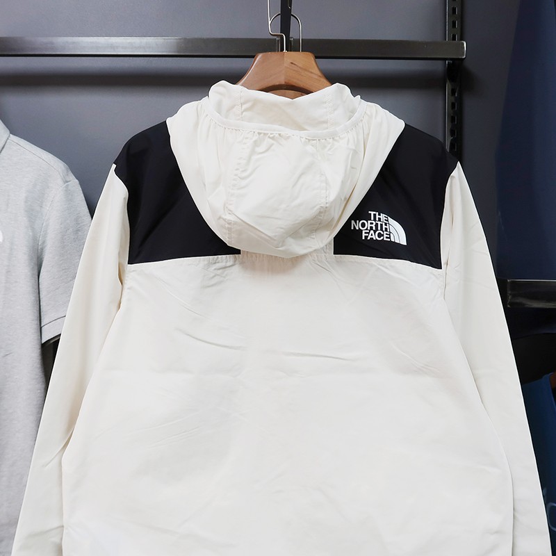 设计点:亚洲版型,宽松剪裁;防风面料;DWR防泼水处理,防护性更强;三片式固定风帽;带搭扣闭合和前中反装拉链的防风片设计;带反装开口的带盖插手贴袋设计;风帽、口袋和袖口带弹力滚边设计;下摆抽绳配有绳锁扣,便于调节;左胸和右后肩带丝印品牌标识设计。