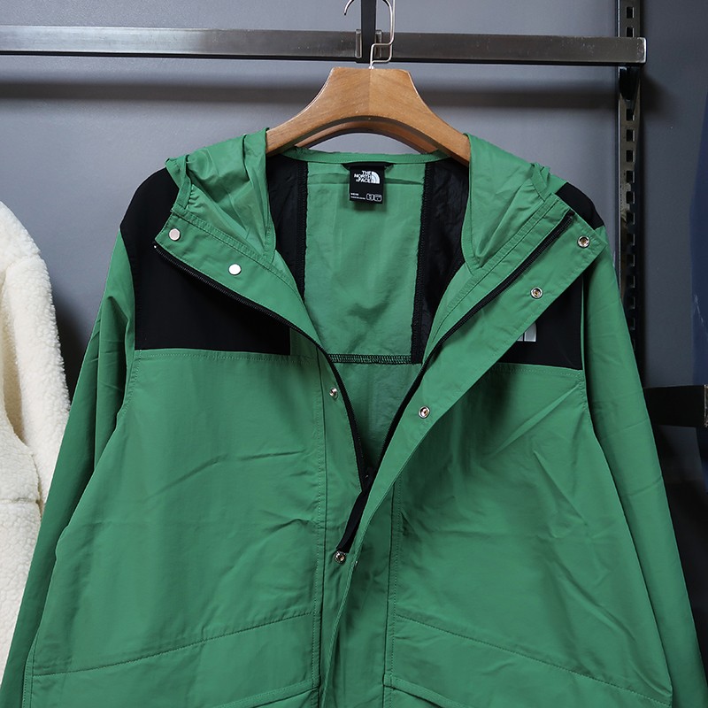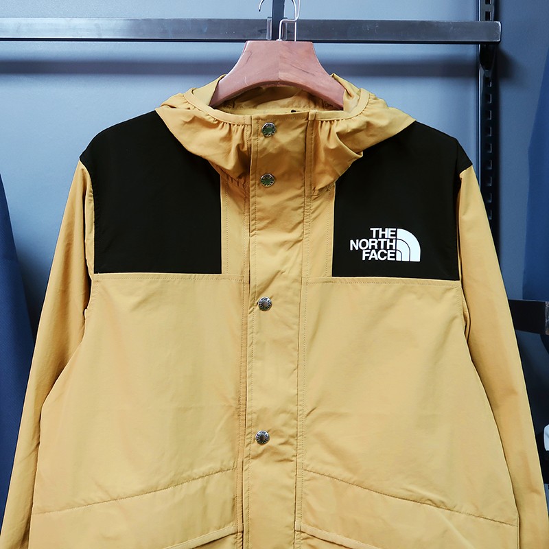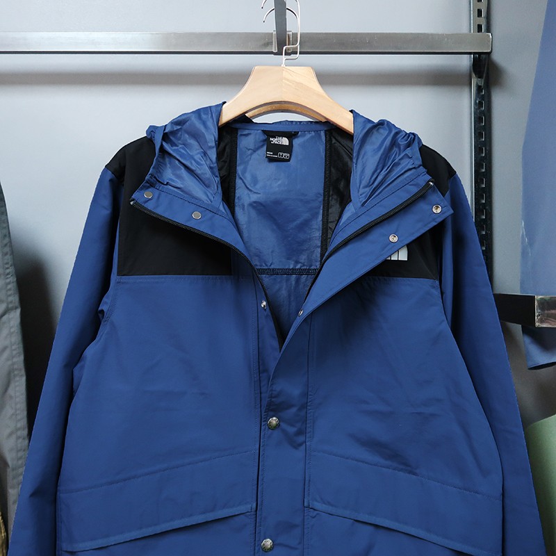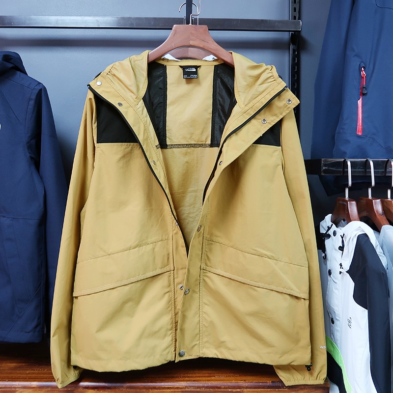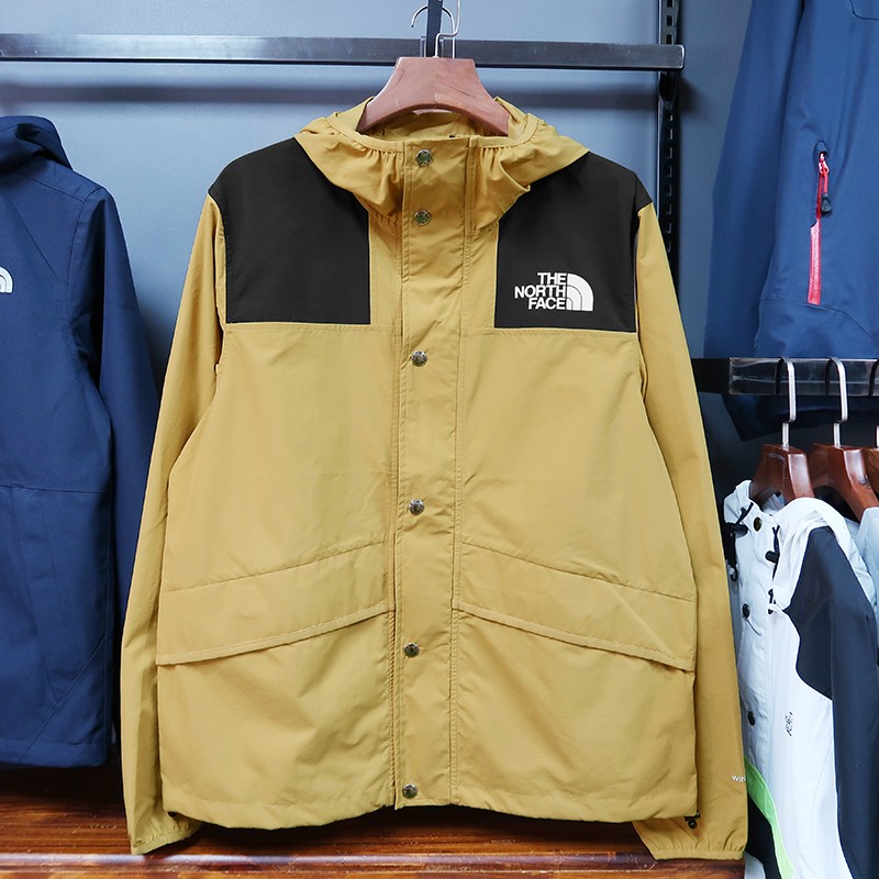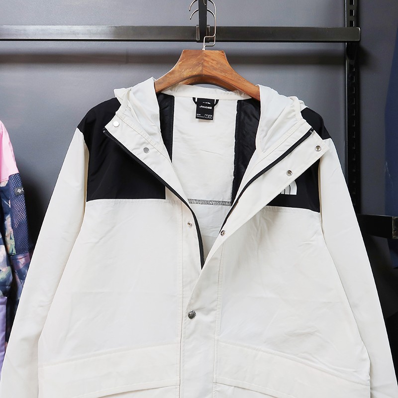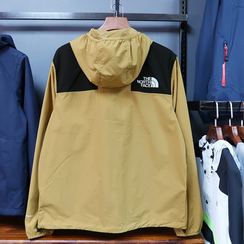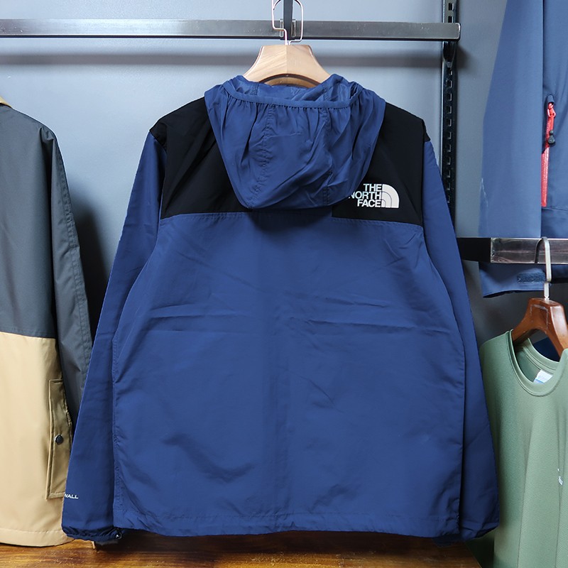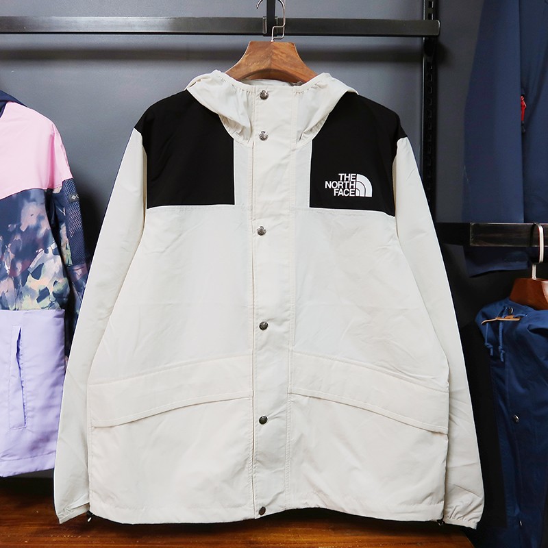 设计点:亚洲版型,宽松剪裁;防风面料;DWR防泼水处理,防护性更强;三片式固定风帽;带搭扣闭合和前中反装拉链的防风片设计;带反装开口的带盖插手贴袋设计;风帽、口袋和袖口带弹力滚边设计;下摆抽绳配有绳锁扣,便于调节;左胸和右后肩带丝印品牌标识设计。