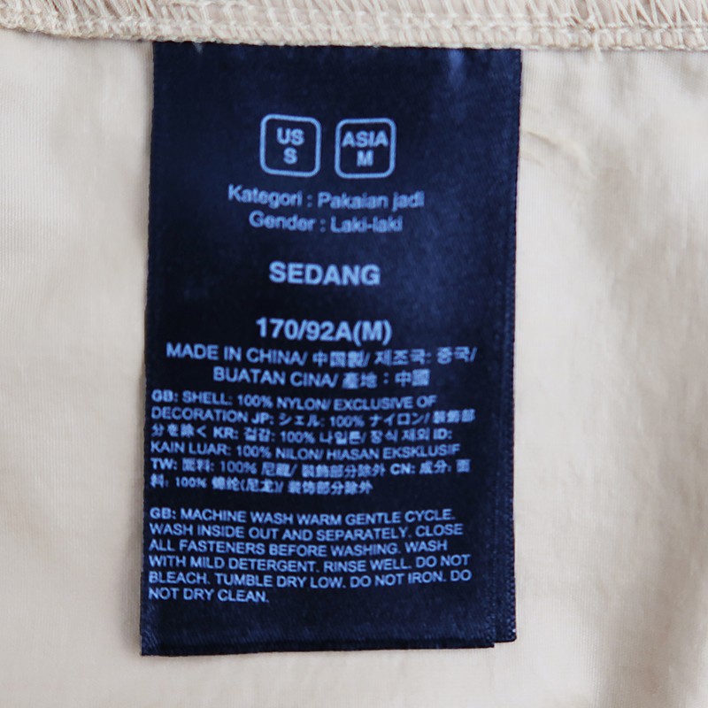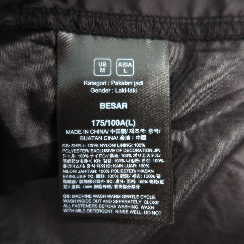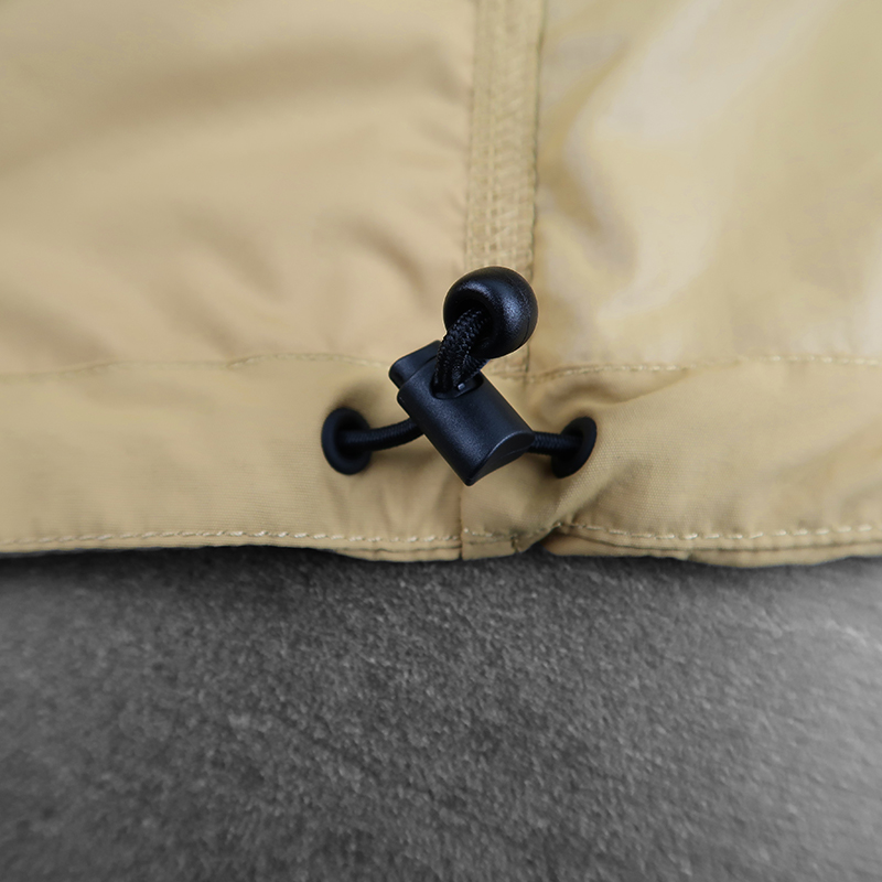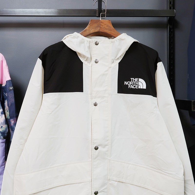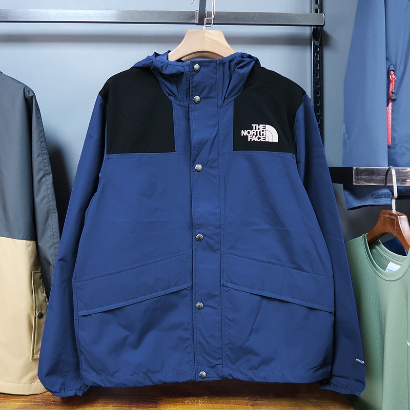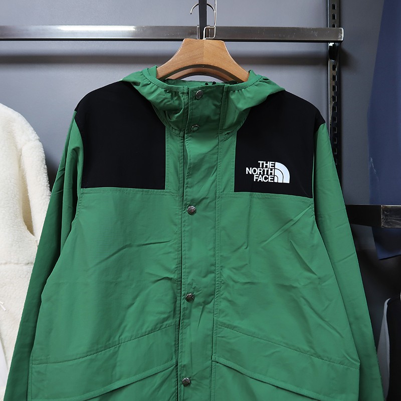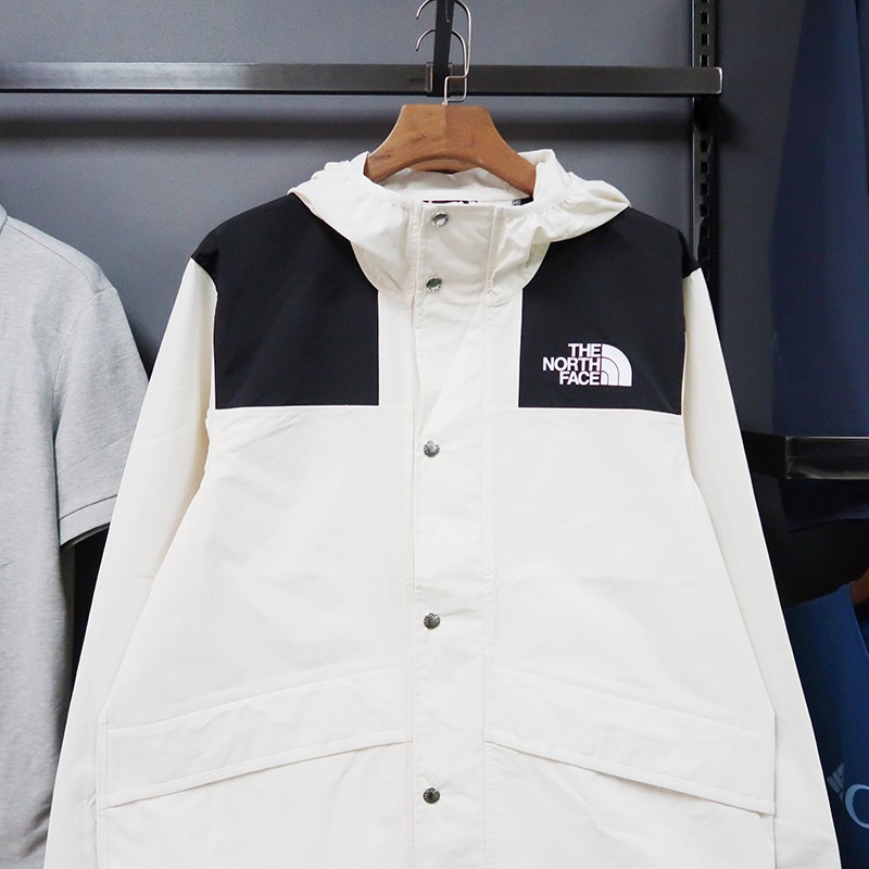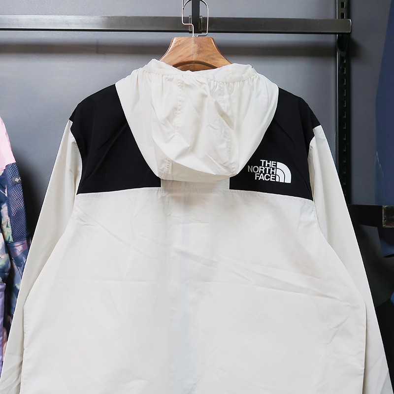 设计点:亚洲版型,宽松剪裁;防风面料;DWR防泼水处理,防护性更强;三片式固定风帽;带搭扣闭合和前中反装拉链的防风片设计;带反装开口的带盖插手贴袋设计;风帽、口袋和袖口带弹力滚边设计;下摆抽绳配有绳锁扣,便于调节;左胸和右后肩带丝印品牌标识设计。