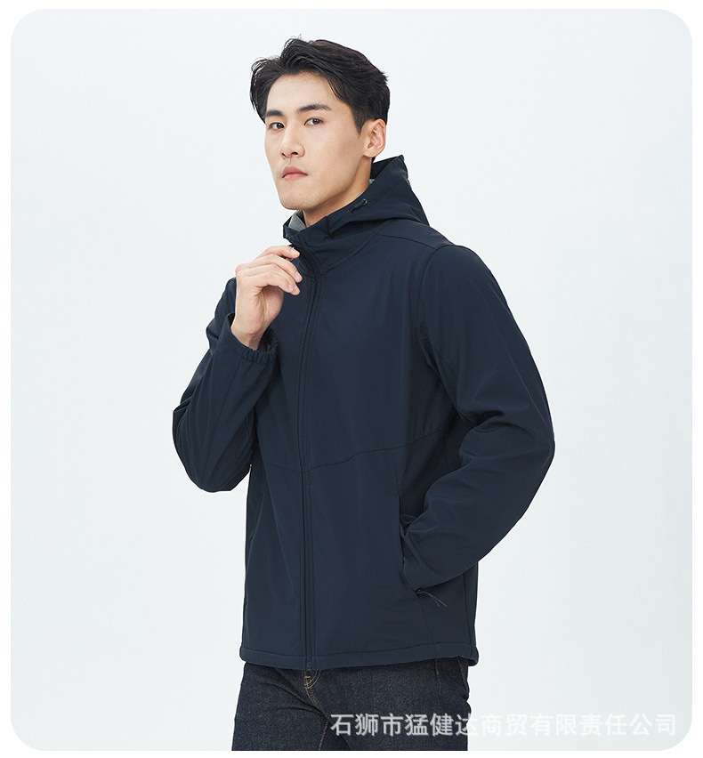 设计点:75D四面弹复合144F小方格摇粒320g四级防泼水、四级色牢度、防冷风连帽设计,3D裁剪,360°防风功能YKK品质拉链,经久耐用顺滑不卡壳.