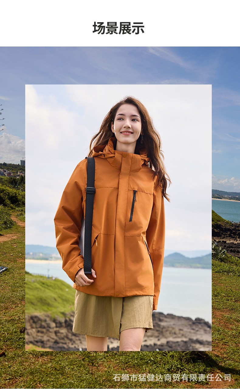 设计点:75D双经双纬消光高弹棉感,柔软舒适静水压5000+、透湿率5000+四级防泼水,四级色牢度,抗静电科技定制印花里布,YKK拉链,高级显档次300克超细摇粒绒内胆,抗静电科技.
