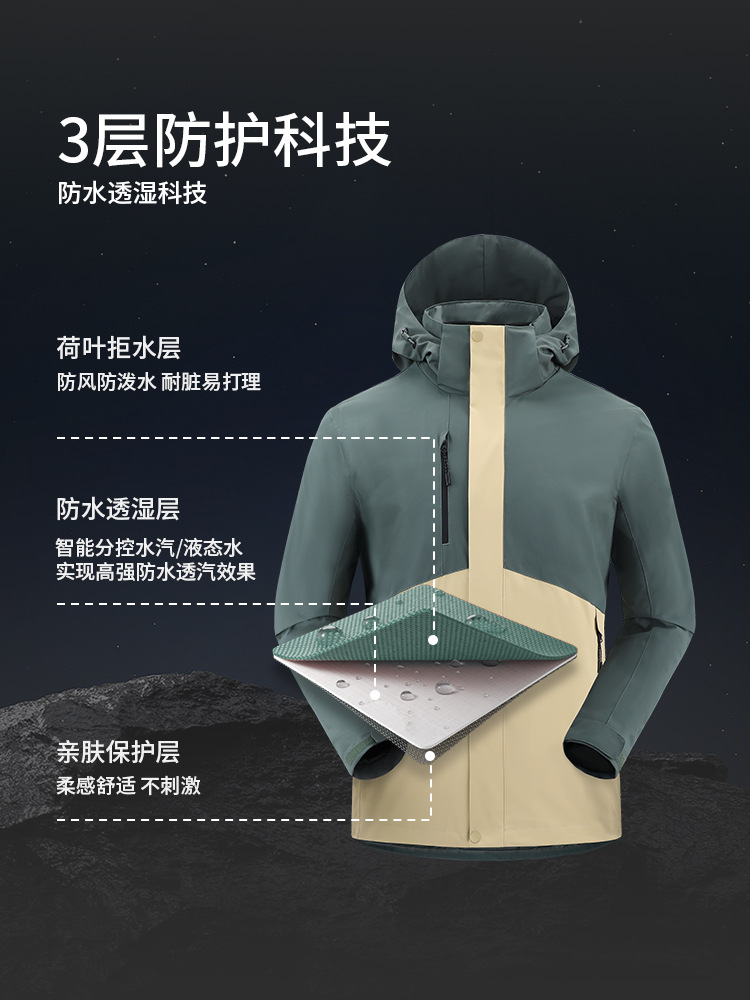 设计点:75D双经双纬消光高弹棉感,柔软舒适四级防泼水,四级色牢度,抗静电科技全新透气系统,透气足球格提花网布前胸YKK拉链,口袋RBR防水拉链300克超细摇粒绒内胆,抗静电科技.