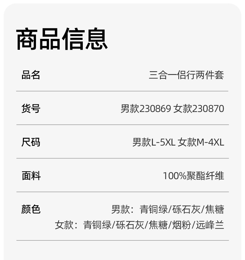 设计点:柔肤棉高弹面料,不易褪色变形防泼水四级,防风保暖更舒适外套内胆可拆卸组合,一衣三式穿YKK品质拉链,经久耐用顺滑不卡壳360g亲肤银狐绒内胆,抗静电科技.