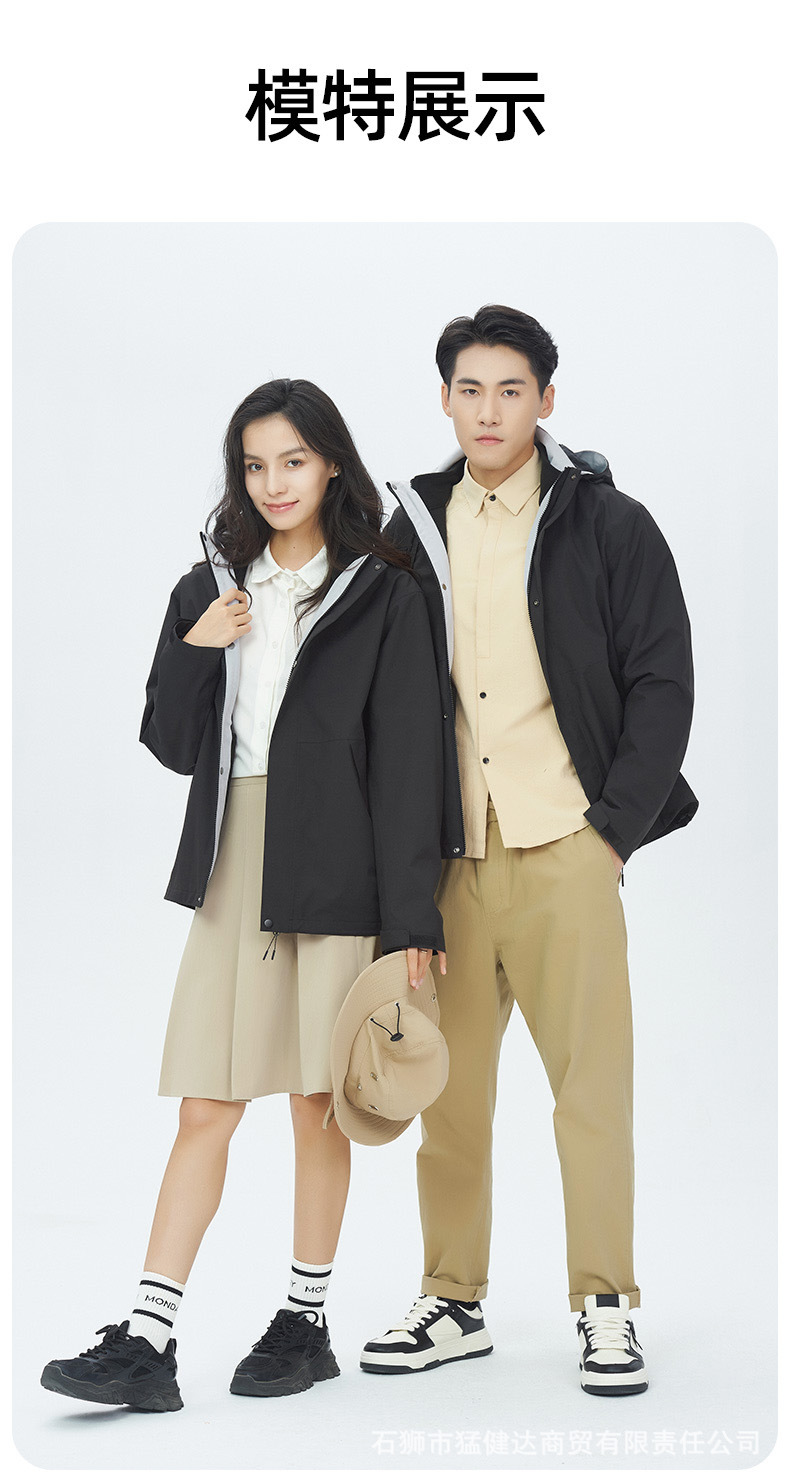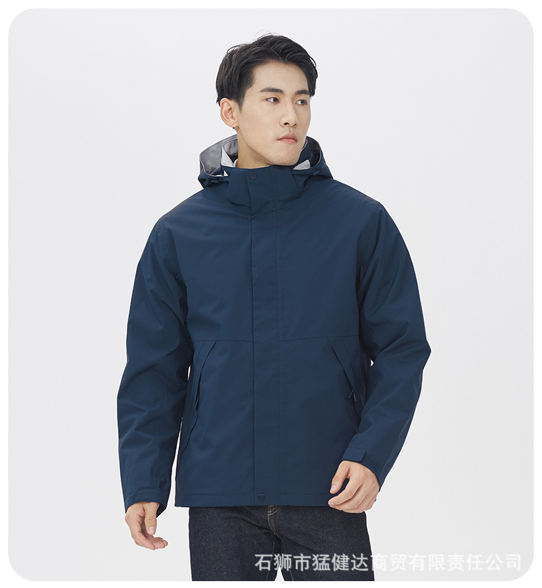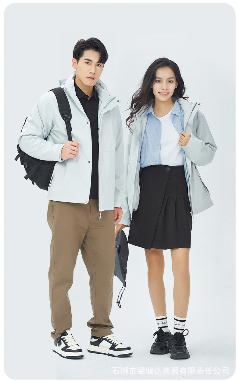 设计点:75D双股棉感小牛津,不易褪色变形GAOTAIER-TEX高太尔科技面料防水指数10000,透湿指数7680全衣缝位热封压胶,国家二级冲锋衣内胆袖里加衬布,舒适亲肤穿脱方便320克摇粒绒抗静电内胆,YKK拉链。