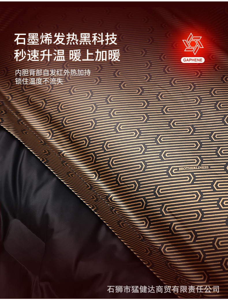 设计点:75D双股棉感小牛津,不易褪色变形四级防泼水,四级色牢度,抗静电科技里布为230加密定制印花布,极具特色帽子内里采用加厚丝光绒,亲肤更保暖YKK品质拉链,经久耐用顺滑不卡壳新国标90鸭绒内胆,石墨烯聚热科技.