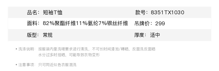 材质:82%聚酯纤维11%氨纶7%银丝纤维