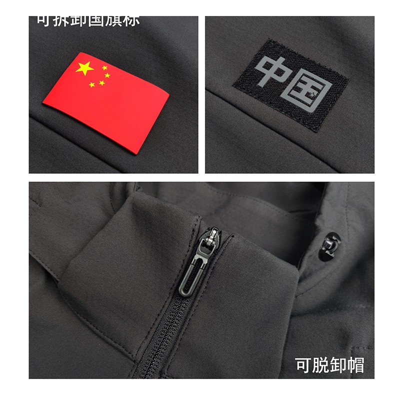 设计点:整体廊形简约质感。搭配可拆卸帽设计,更贴合头部轮廊,适合更多穿着场录。前胸国旗魔术贴及后背"CHINA"印花,彰显爱国情怀。