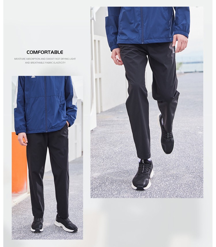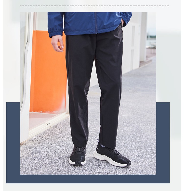 设计点:面料不易起皱,舒适透气富有弹性。松紧腰头内置抽绳,随意调节援围。两侧拉链播袋,方便实用。基础版型,日常百搭。