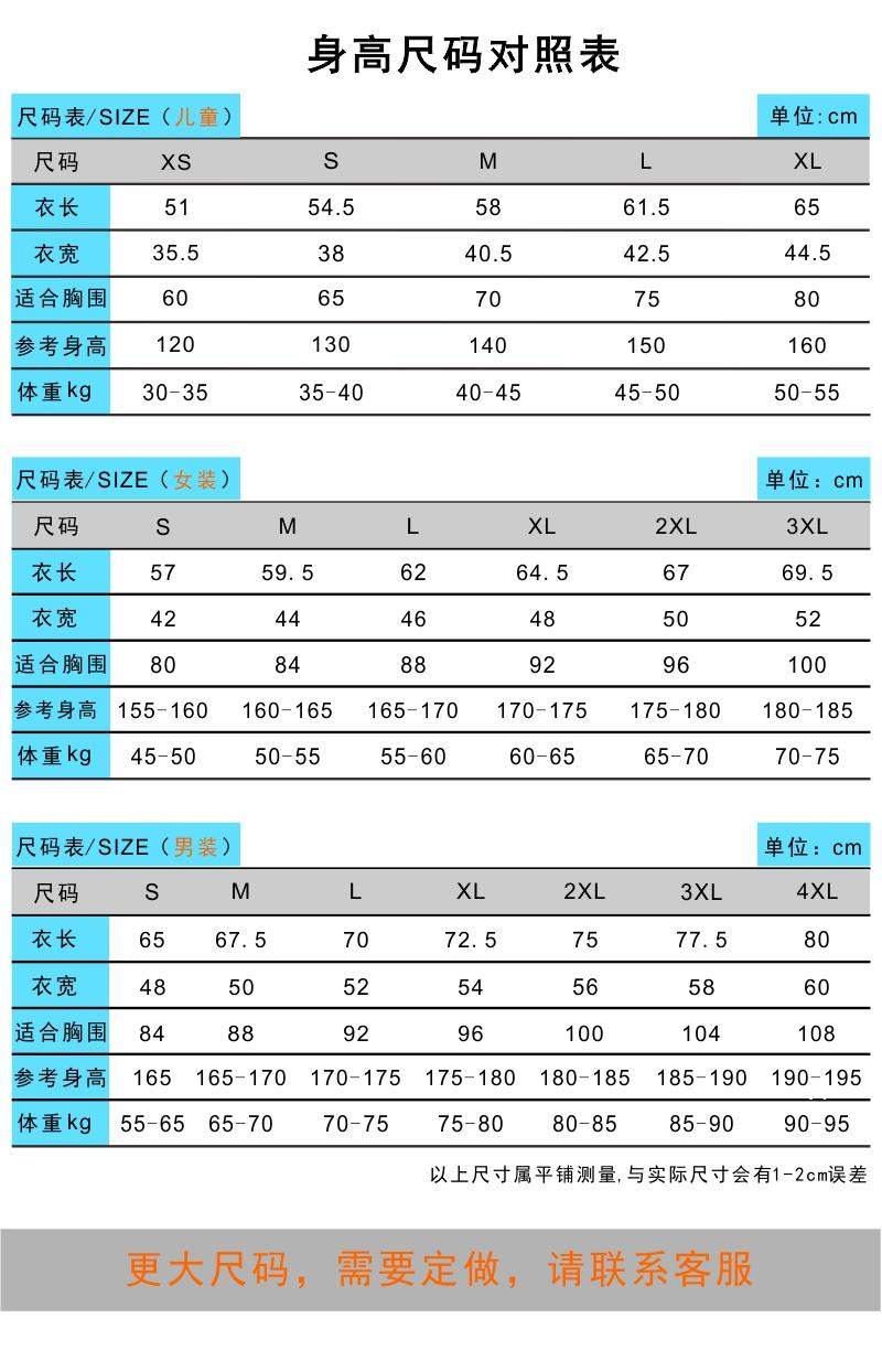 尺码:XS-4XL
