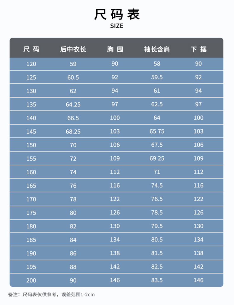尺码:120-200