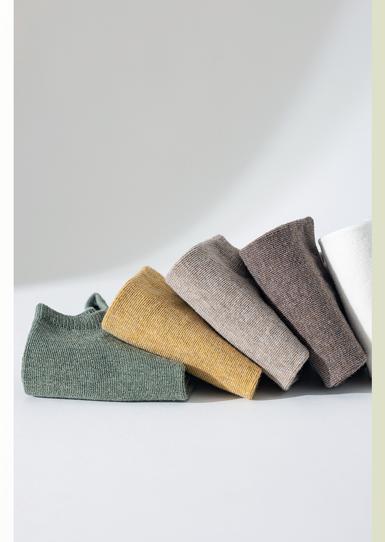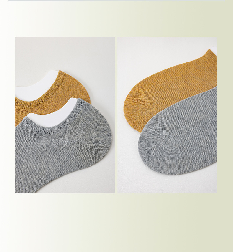 工艺:200针短袜、40支紧密赛络、四级抗起球、花纱色系;3A抗菌、手工缝合,超薄透气隐形袜,后跟硅胶防掉跟
