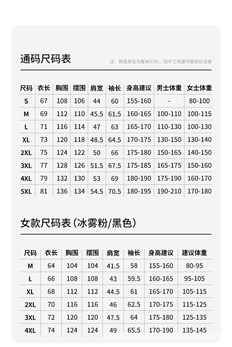 尺码:通码250891 S-5XL、7XL/女款250892 M-4XL