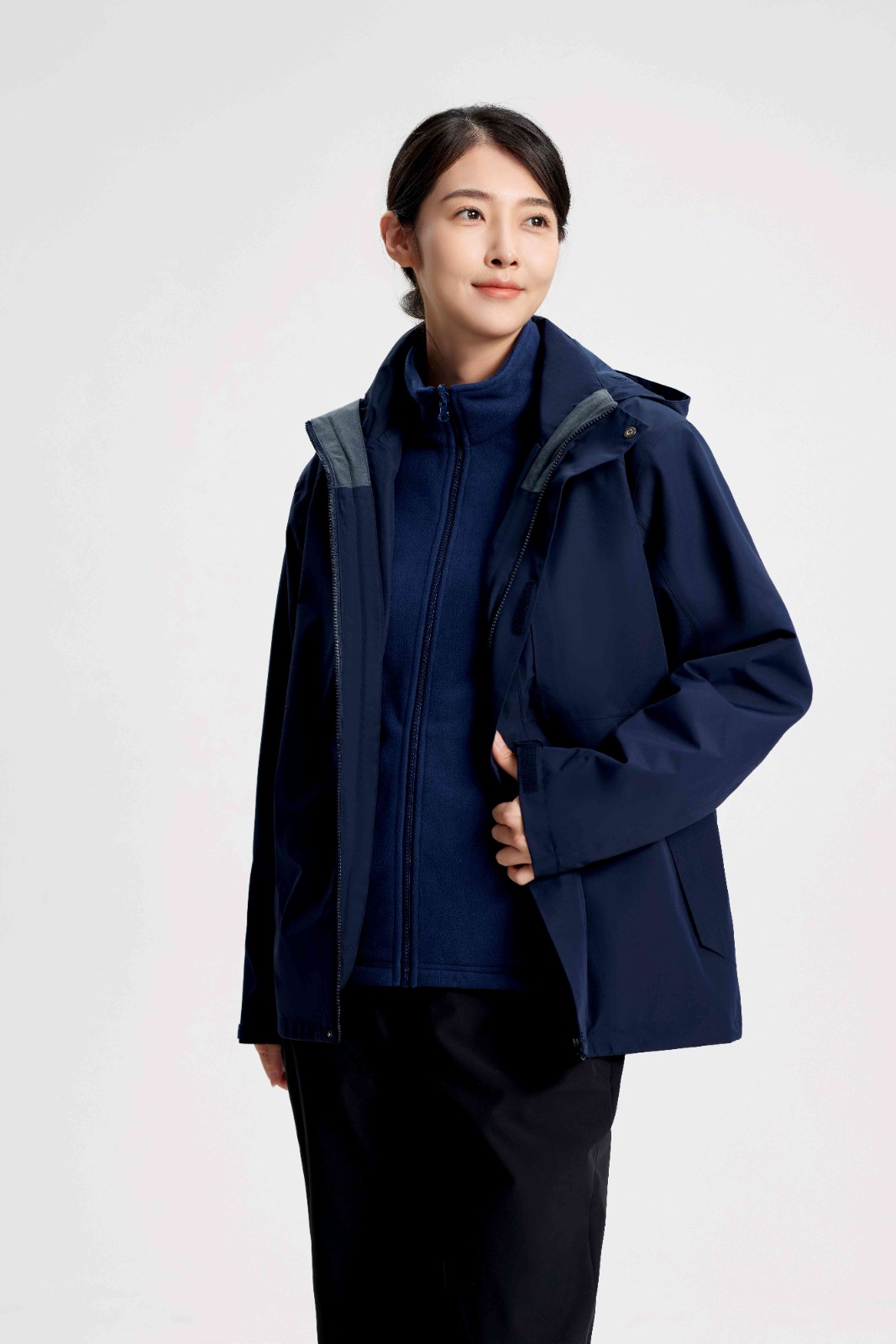 工艺:75DT8小横条面料,质感小横条肌理气凝胶蓄热保暖、持久抑菌、导湿透气静水压、透湿率5000+,四级防泼水商旅加长版型,春亚纺里布,YKK拉链内胆袖里加衬布,舒适亲肤穿脱方便300克气凝胶摇粒绒内胆,抗静电科技