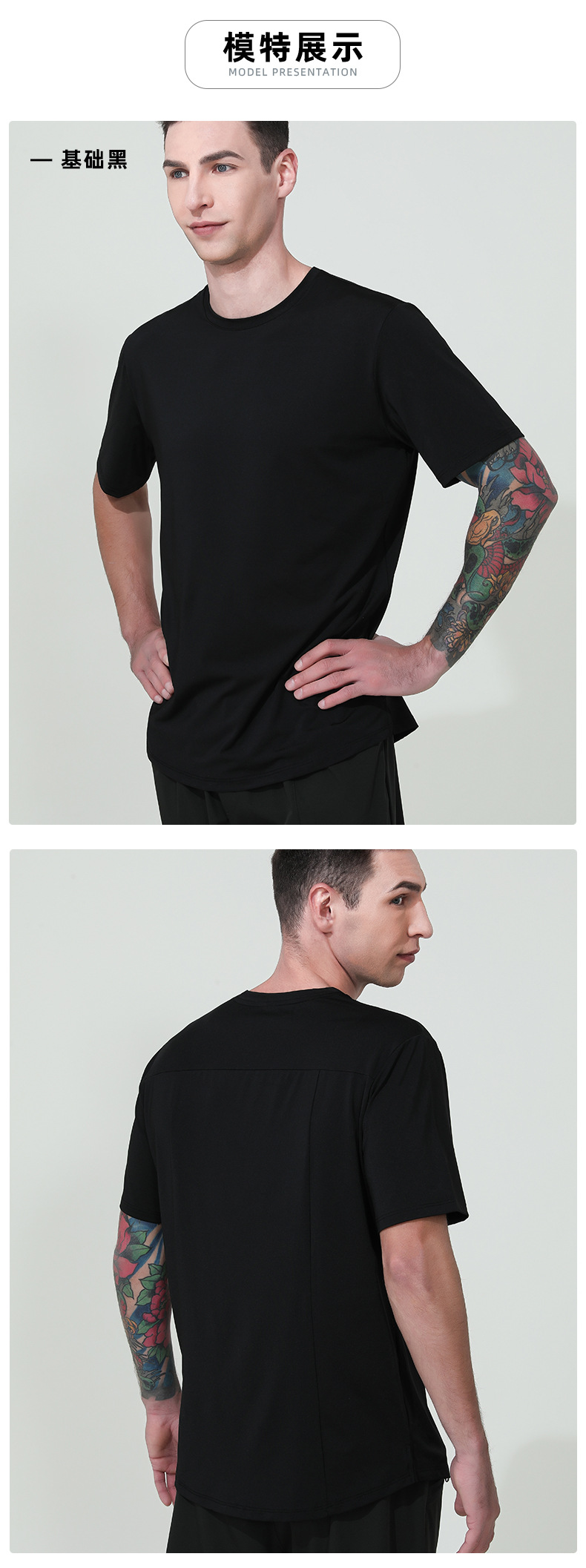 工艺:圆领设计,侧边开叉设计,后背拼接结构,精密缝纫线