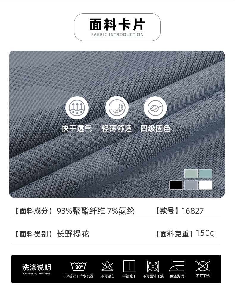 工艺:圆领设计,升级稝缝新工艺,精密缝纫线,时尚提花纹理