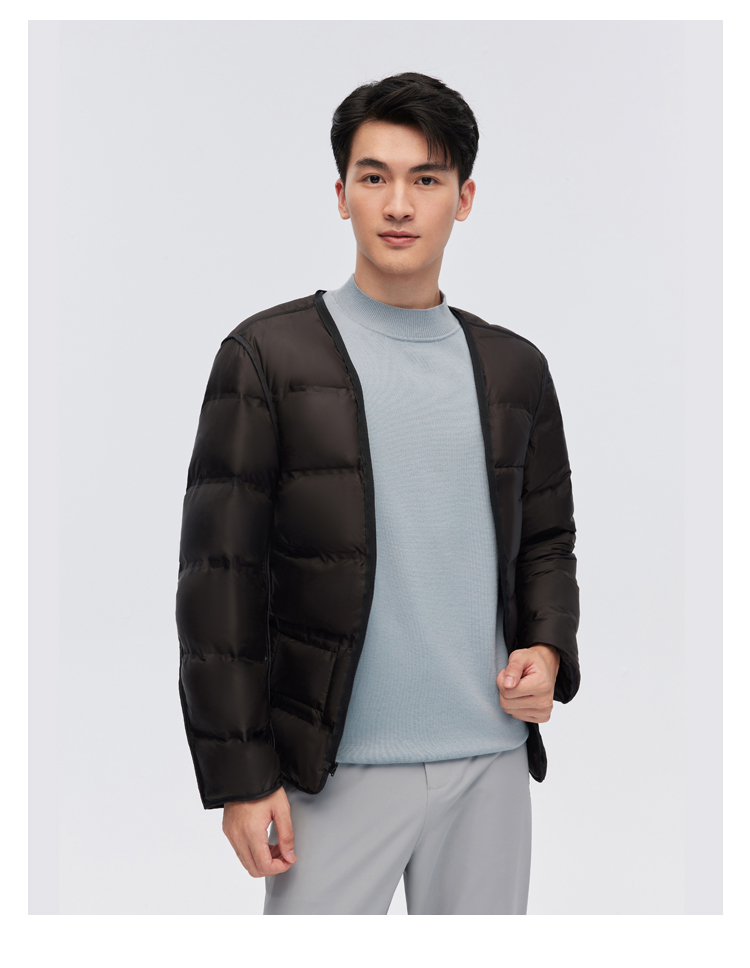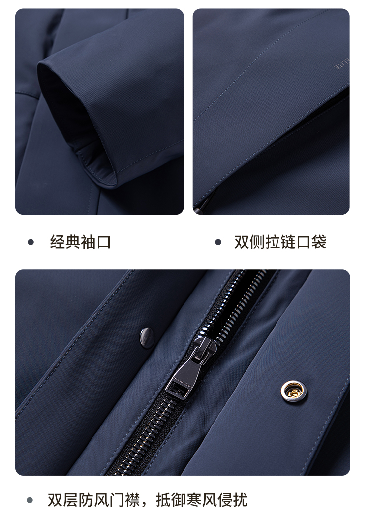 设计点:经典商务立领短风衣,内胆可脱卸。微机理面料,细腻挺括。红外线蓄热里布,借助人体温度迅速升温,持续保温。
