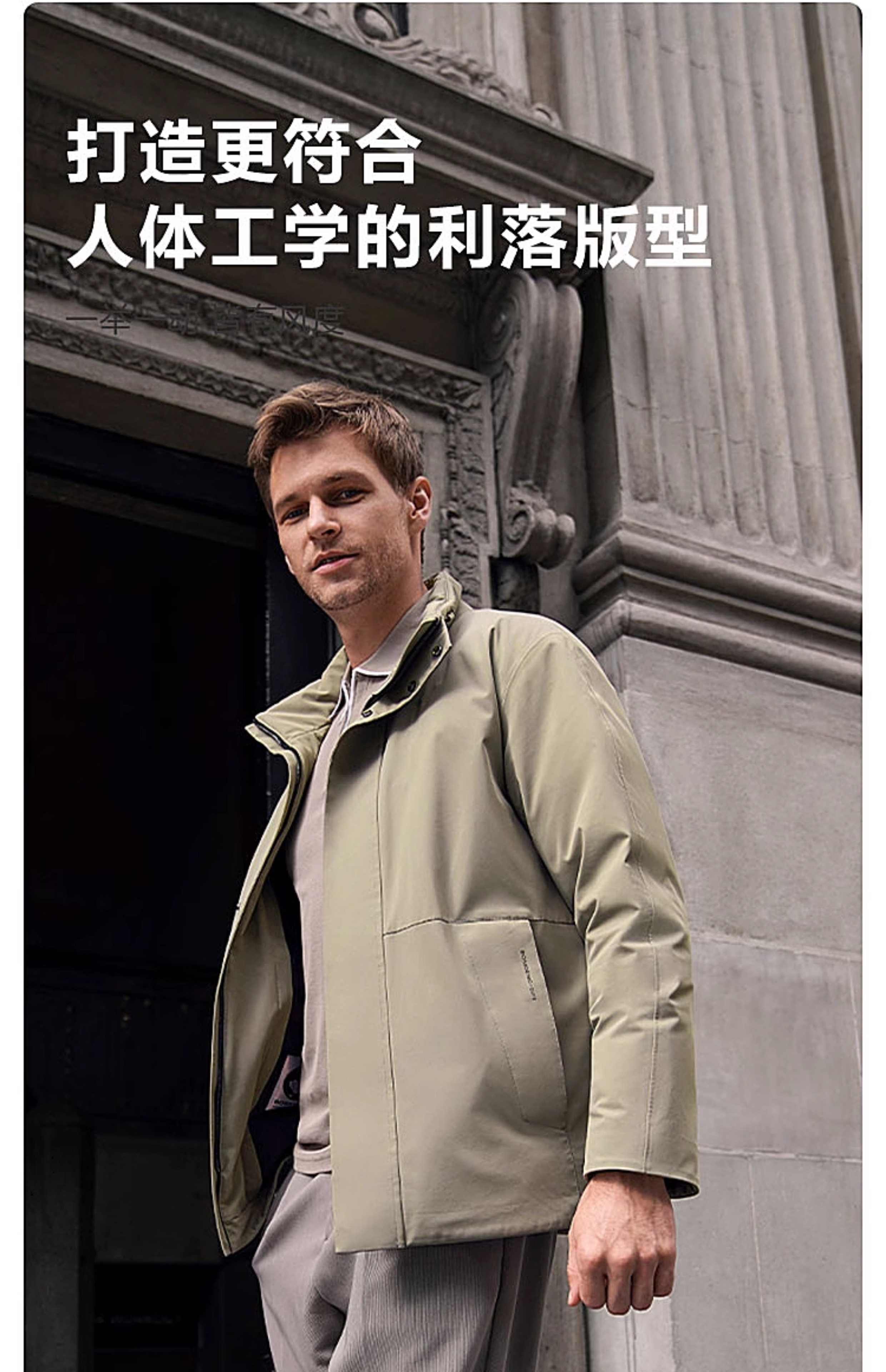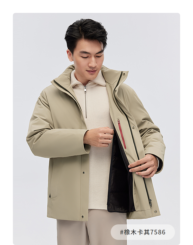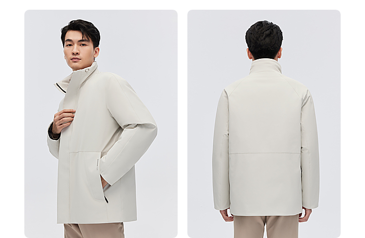 设计点:经典商务立领短风衣,内胆可脱卸,微机理面料,细腻挺括,红外线蓄热里布,借助人体温度迅速升温,持续保暖。
