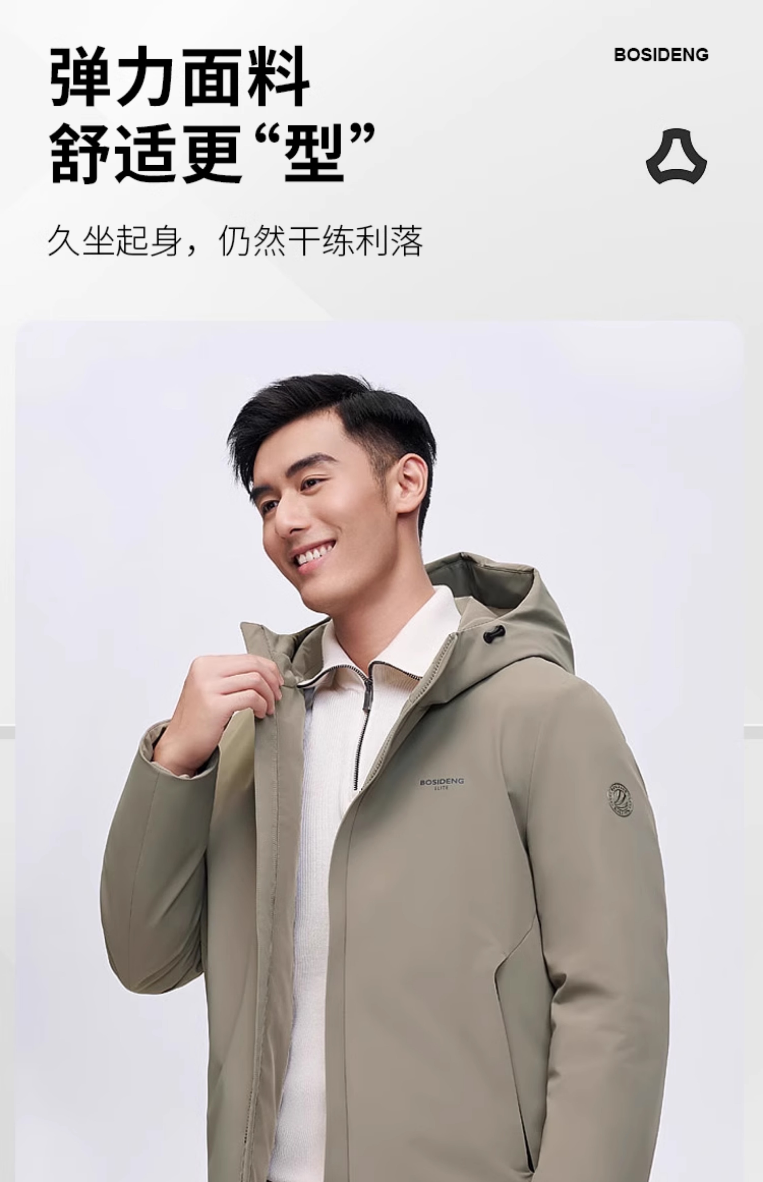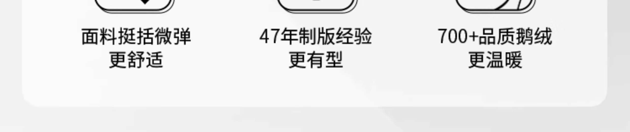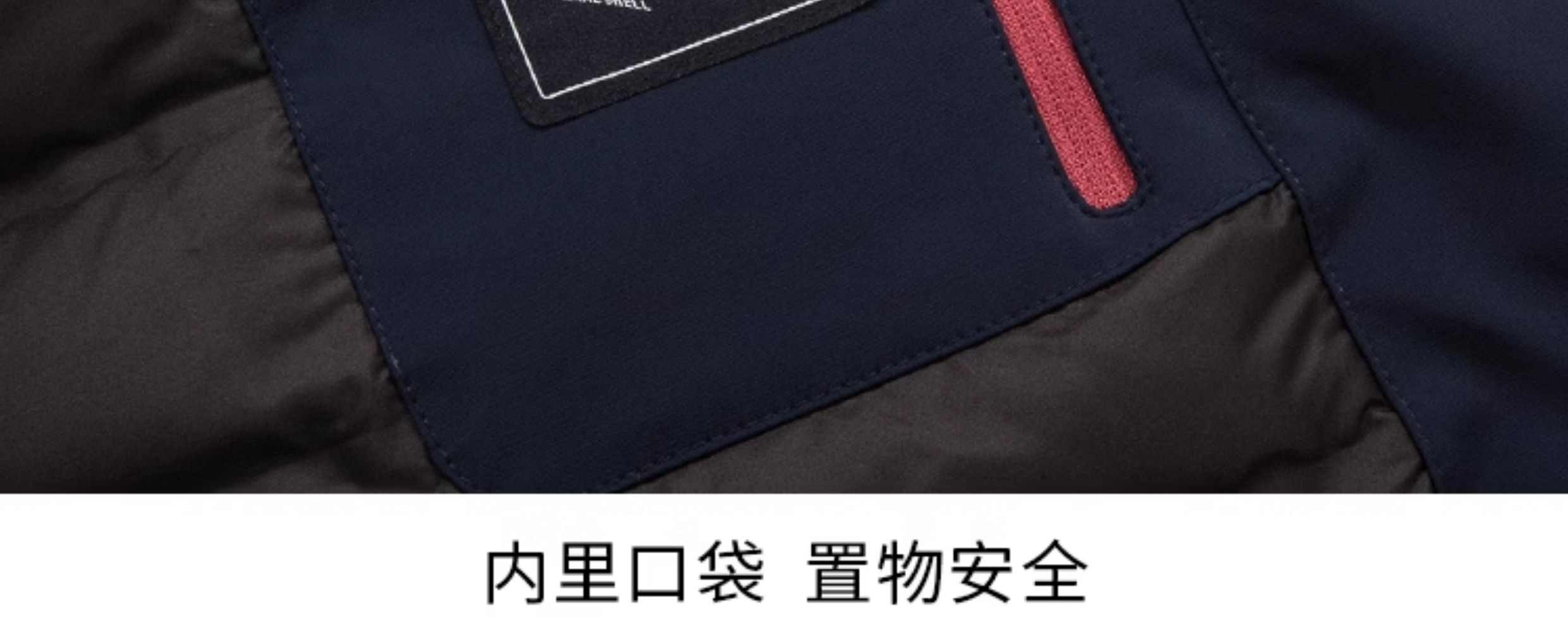 设计点:合体H商务版型,合体舒适,品质面料,紧致细腻,手感滑爽,品质卓越,内里直充绒工艺,无缝压胶,减少压线跑绒风险。