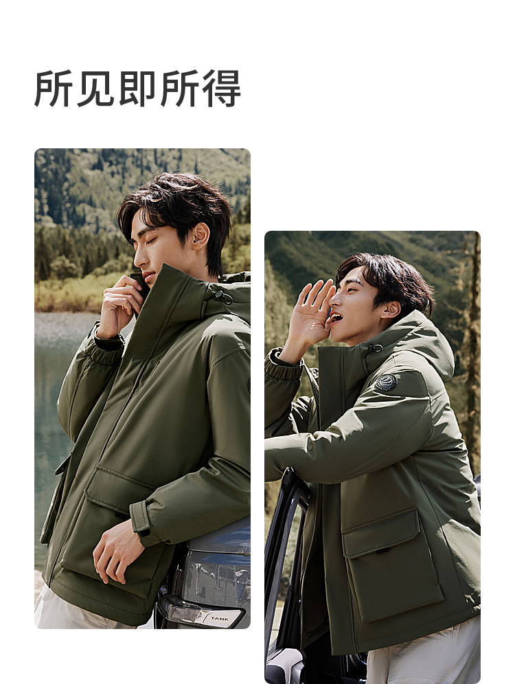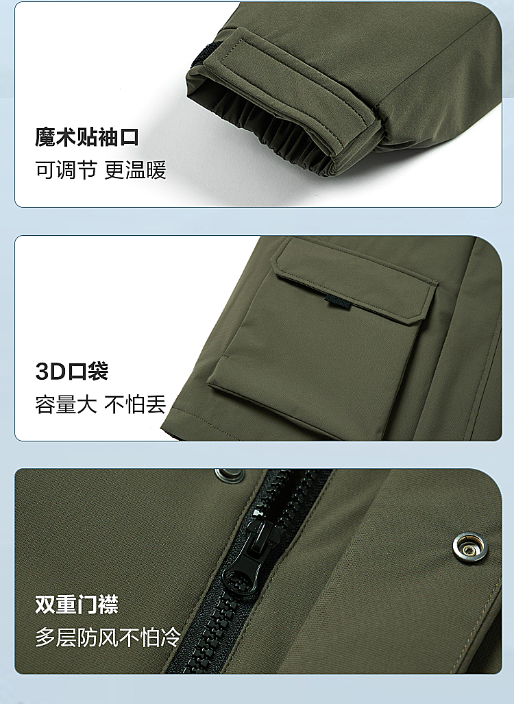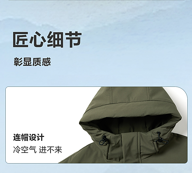 设计点:工装设计风格,包容性强,轻功能面料,远红外发热,舒适温暖