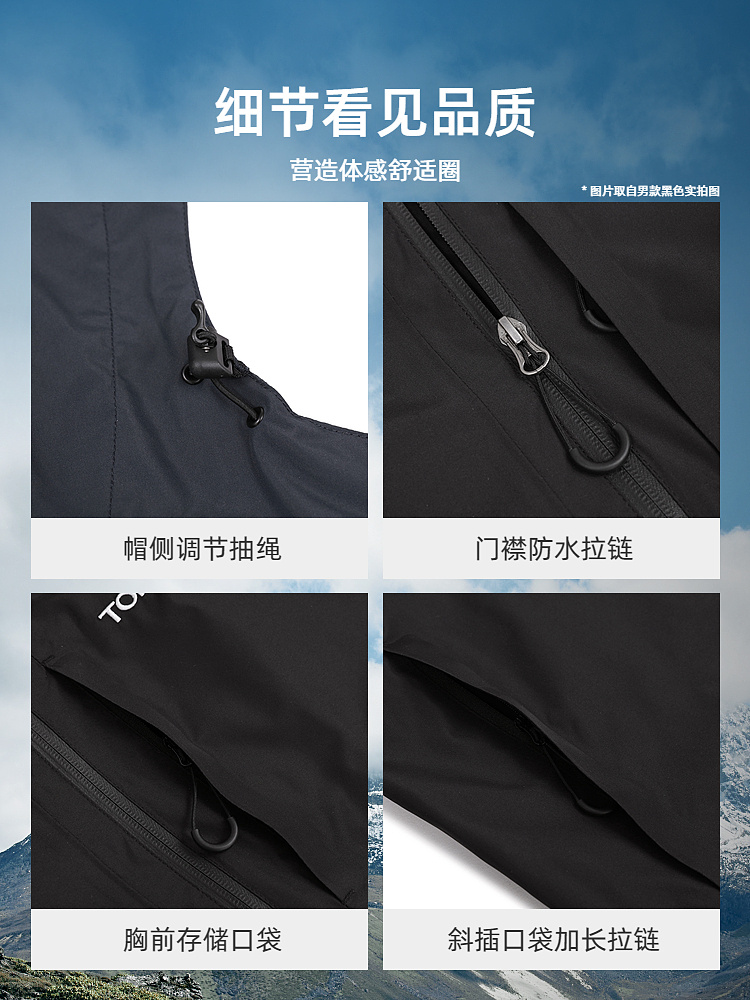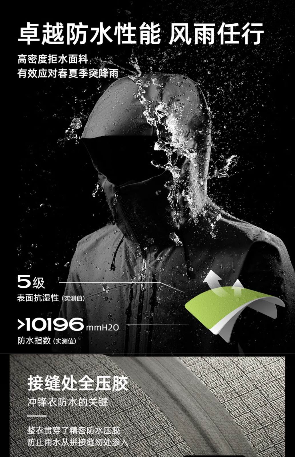 设计点:简约大气,所有缝迹线底均采用防水压胶处理,无惧风雨等复杂环境.