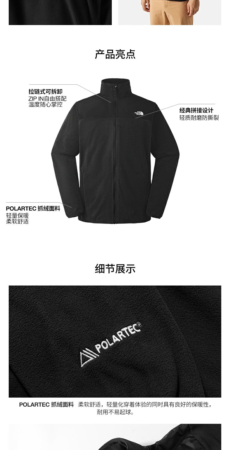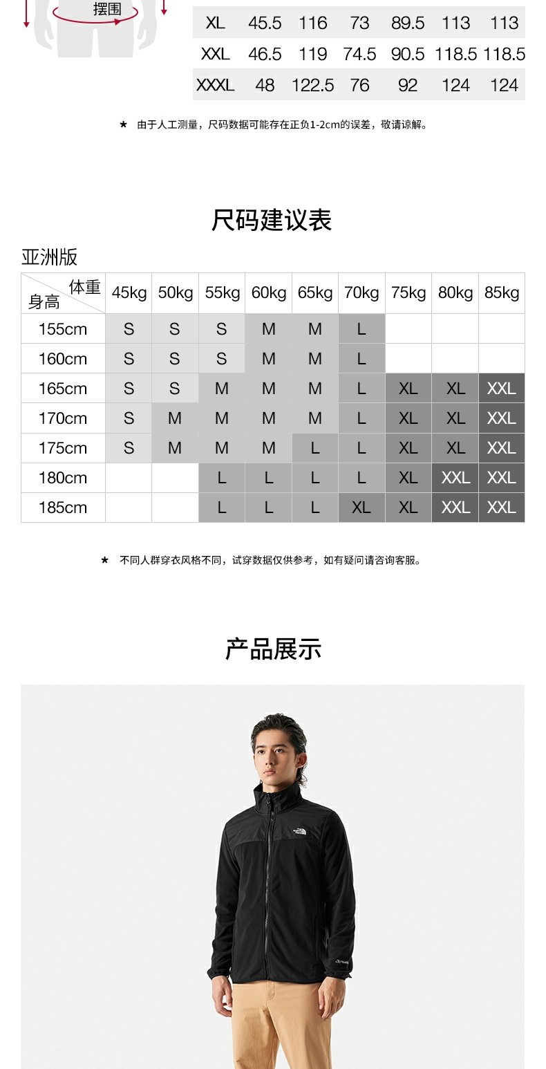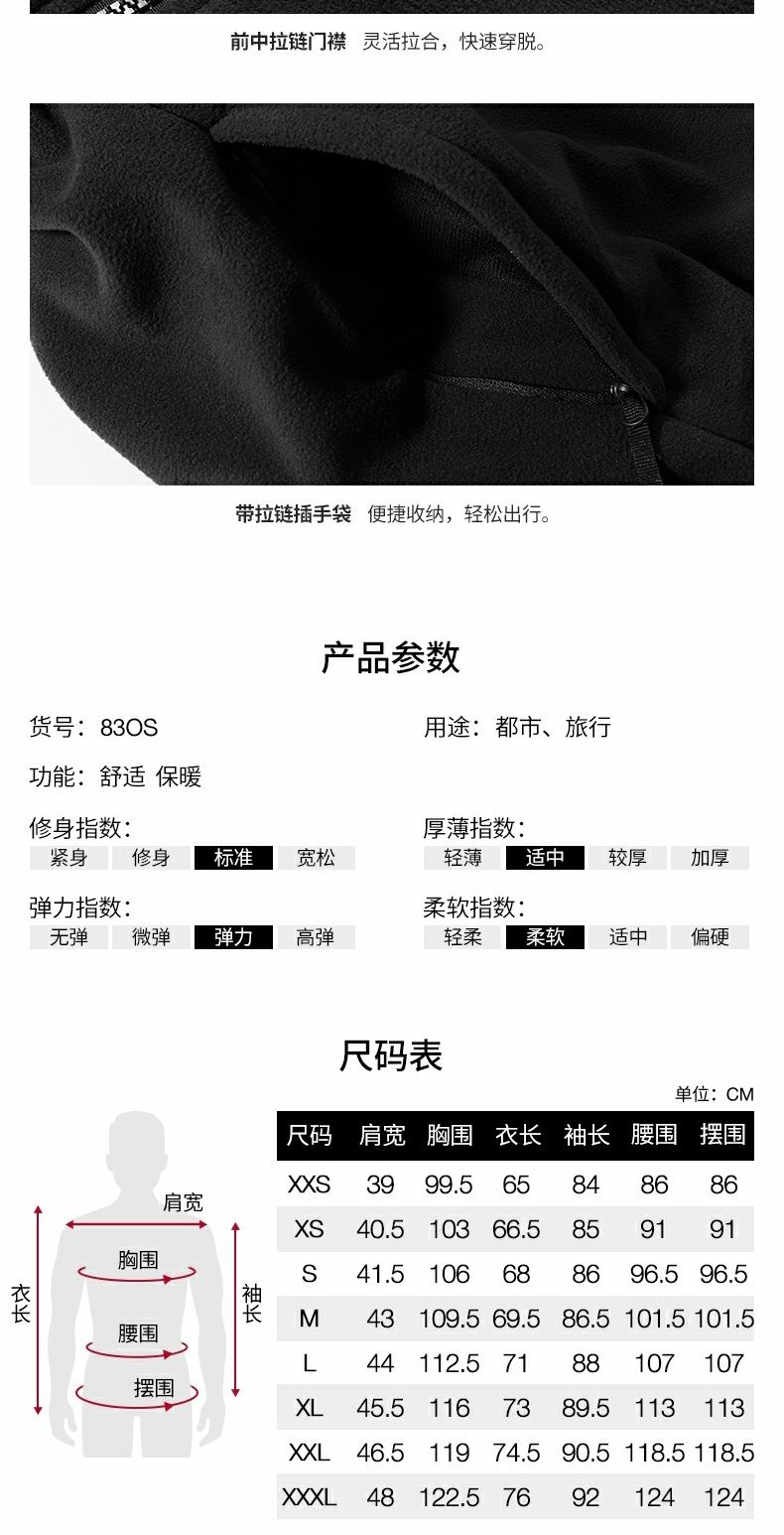 尺码偏移: 偏小一码。 亚洲版型,标准剪裁;Polartec 100抓绒,采用立领设计,更加保暖;采用拉链式链接可脱卸系统,作为中层穿着,非常保暖。带隐形拉链的插手口袋;下摆和袖口带弹力滚边,更加舒适肩部采用经典的剪裁线设计,左臂带刺绣品牌标识.