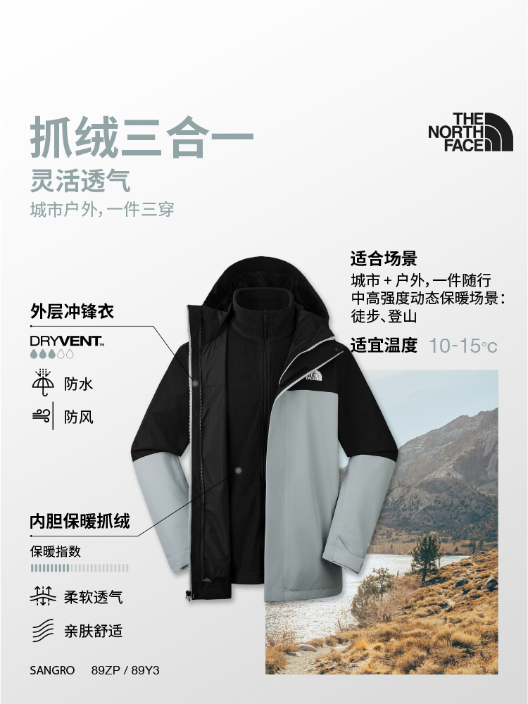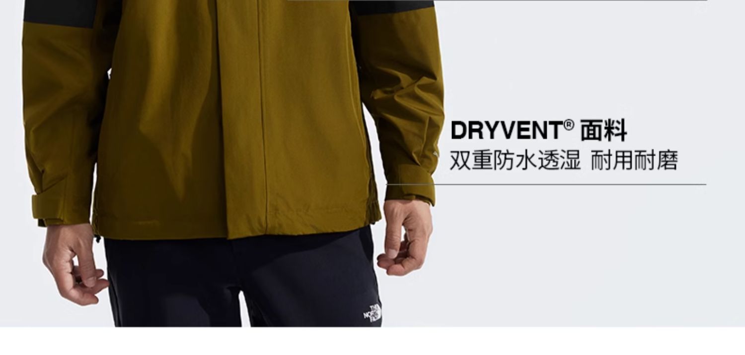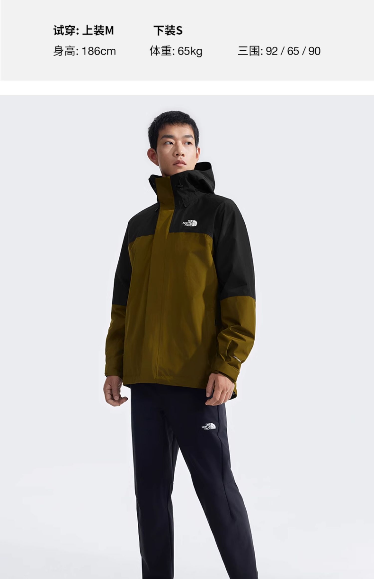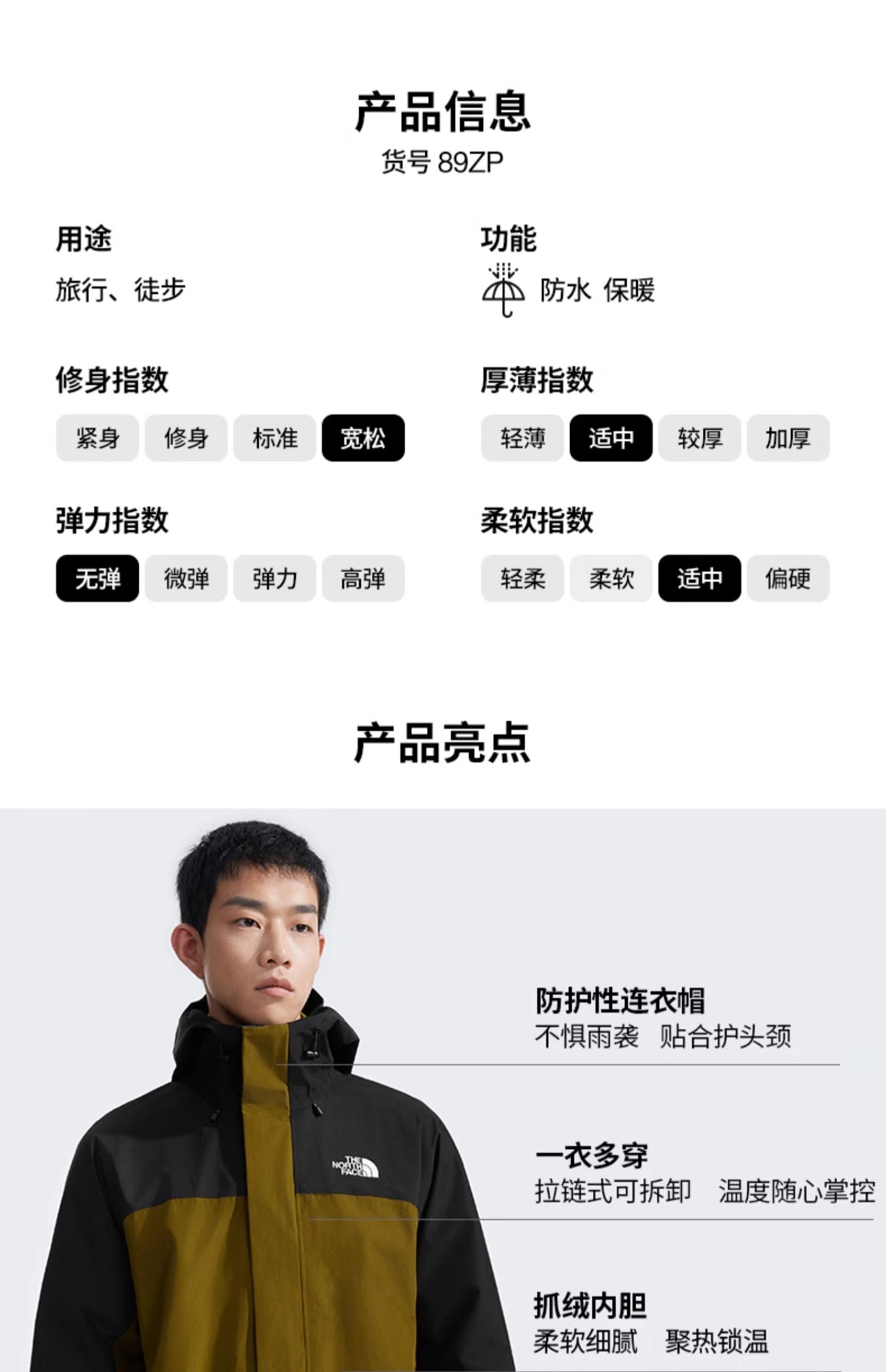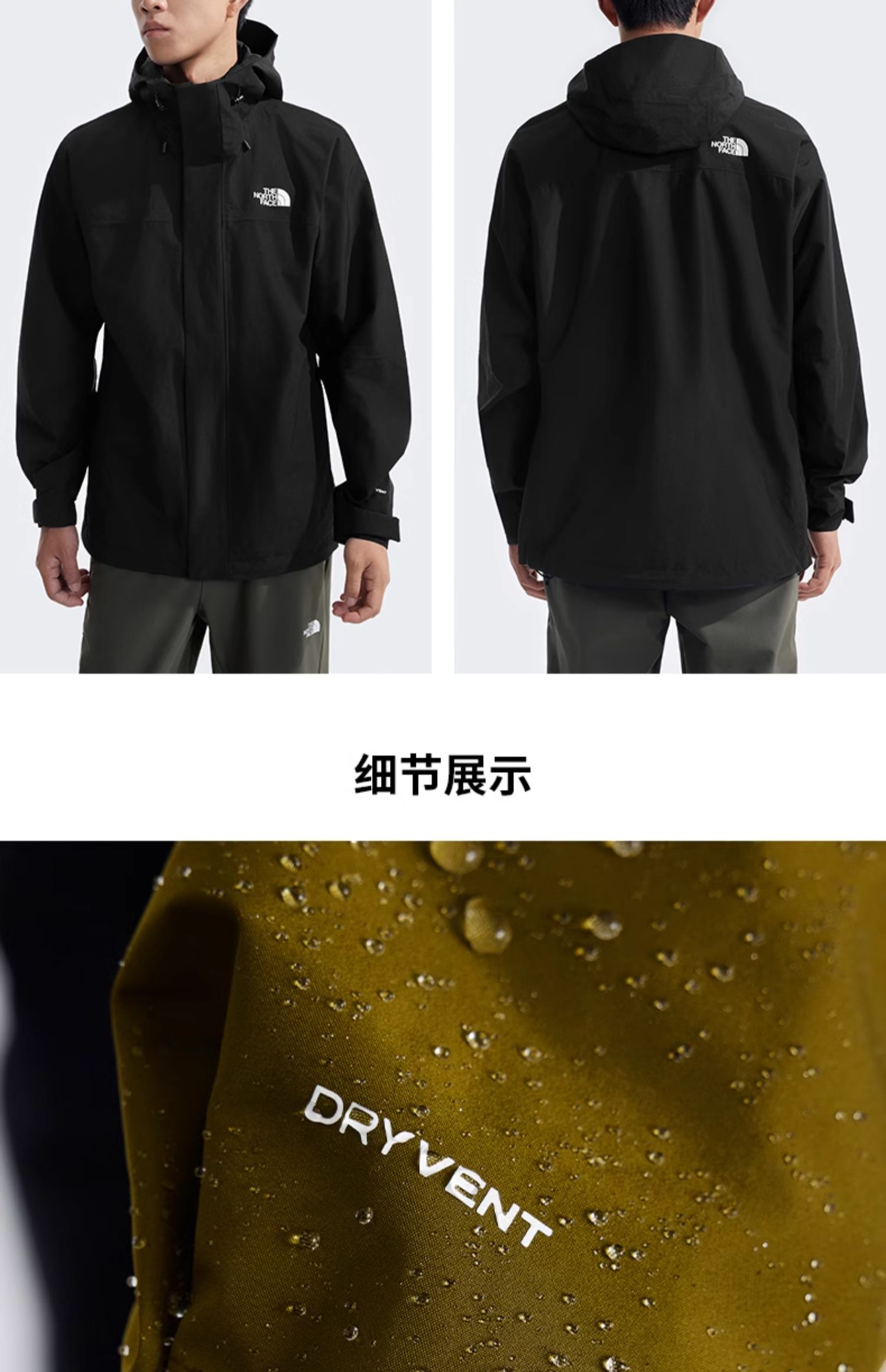 设计点:亚洲版型,宽松剪裁;外层夹克防水面料,无缝工艺;袖口一片式设计;风帽可调节;下摆可调节抽绳;魔术袖口,;塔夫绸网布衬里;功能性插手袋;热转印品牌标识;内胆:宽松剪裁;抓绒;塔夫绸衬里;弹力下摆和袖口。