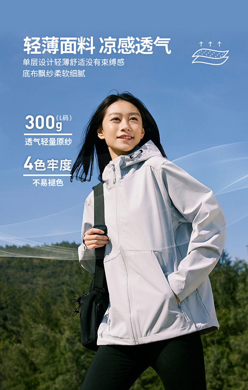 设计点:75D高弹加密三合一复合飘纱面料轻量化单层风衣,全衣缝位包边四级防泼水,防风,透气 轻量化RBR品牌防水拉链,严密防水.