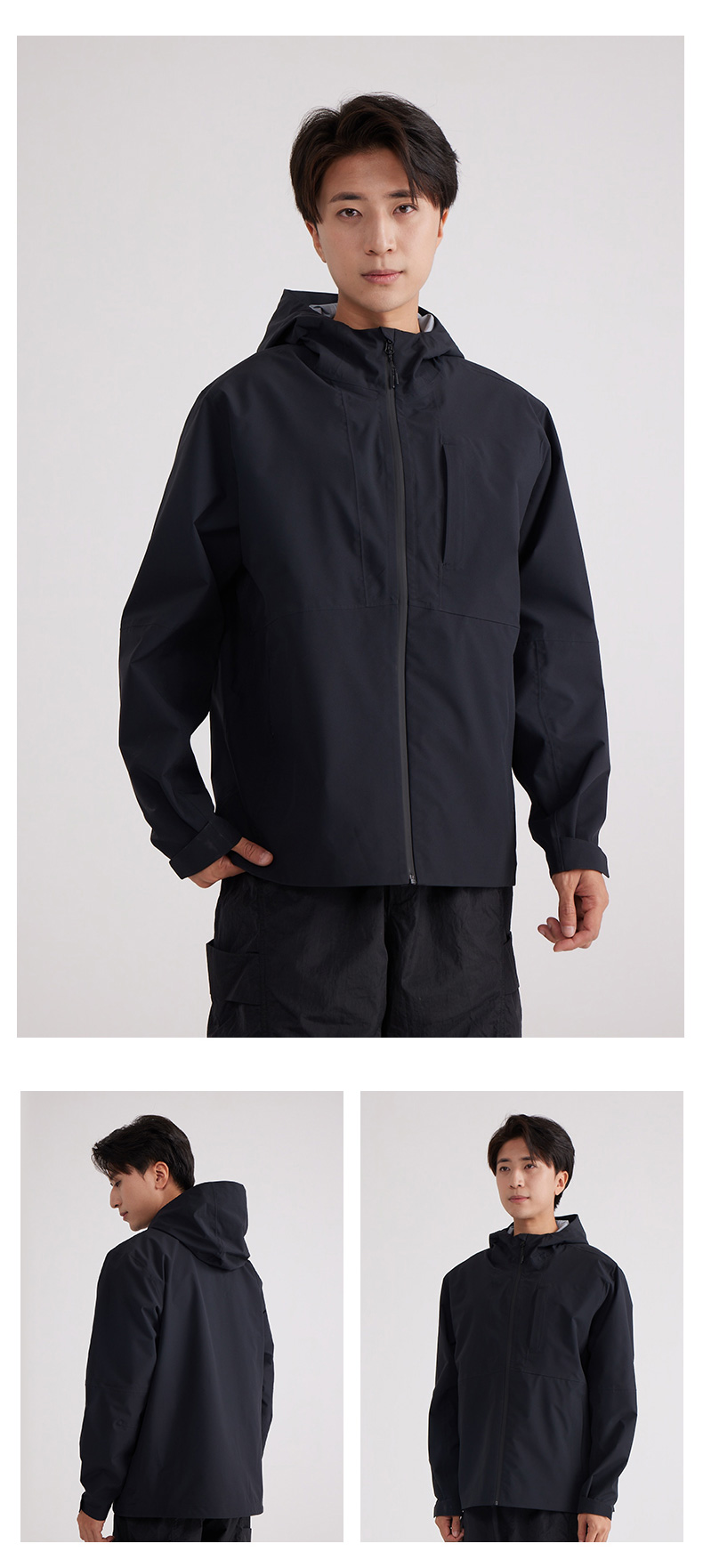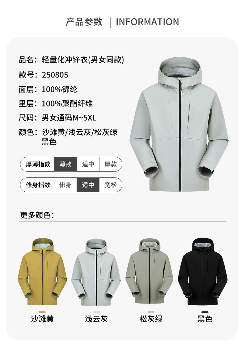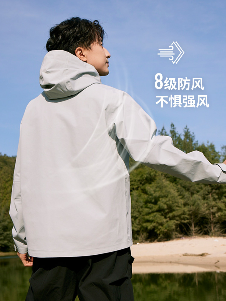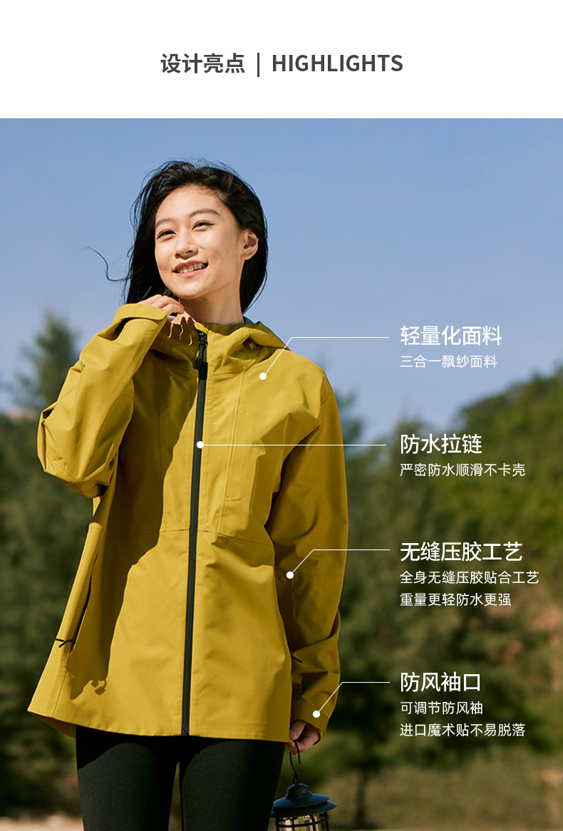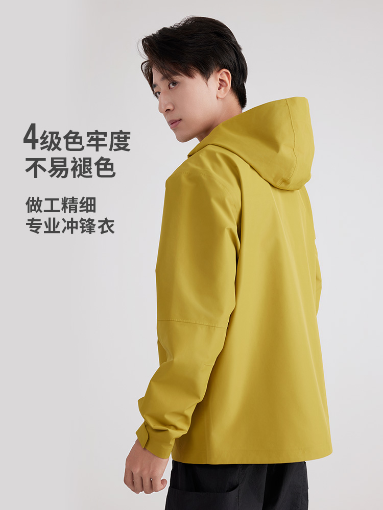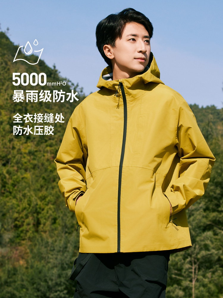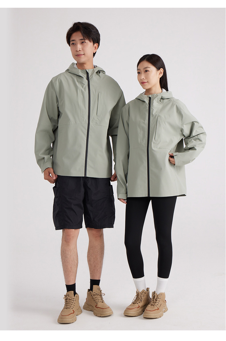 设计点:70D高密三合一面料 不易褪色变形全衣缝位热封压胶,3D版型裁剪静水压、透湿率5000+,四级防泼水RBR品牌科技防水拉链,严密防水轻量化科技硬壳,行动自如无束缚感.