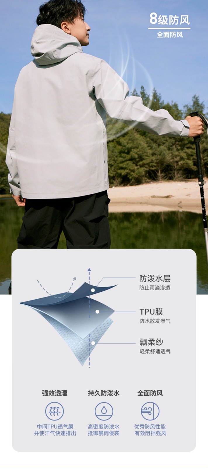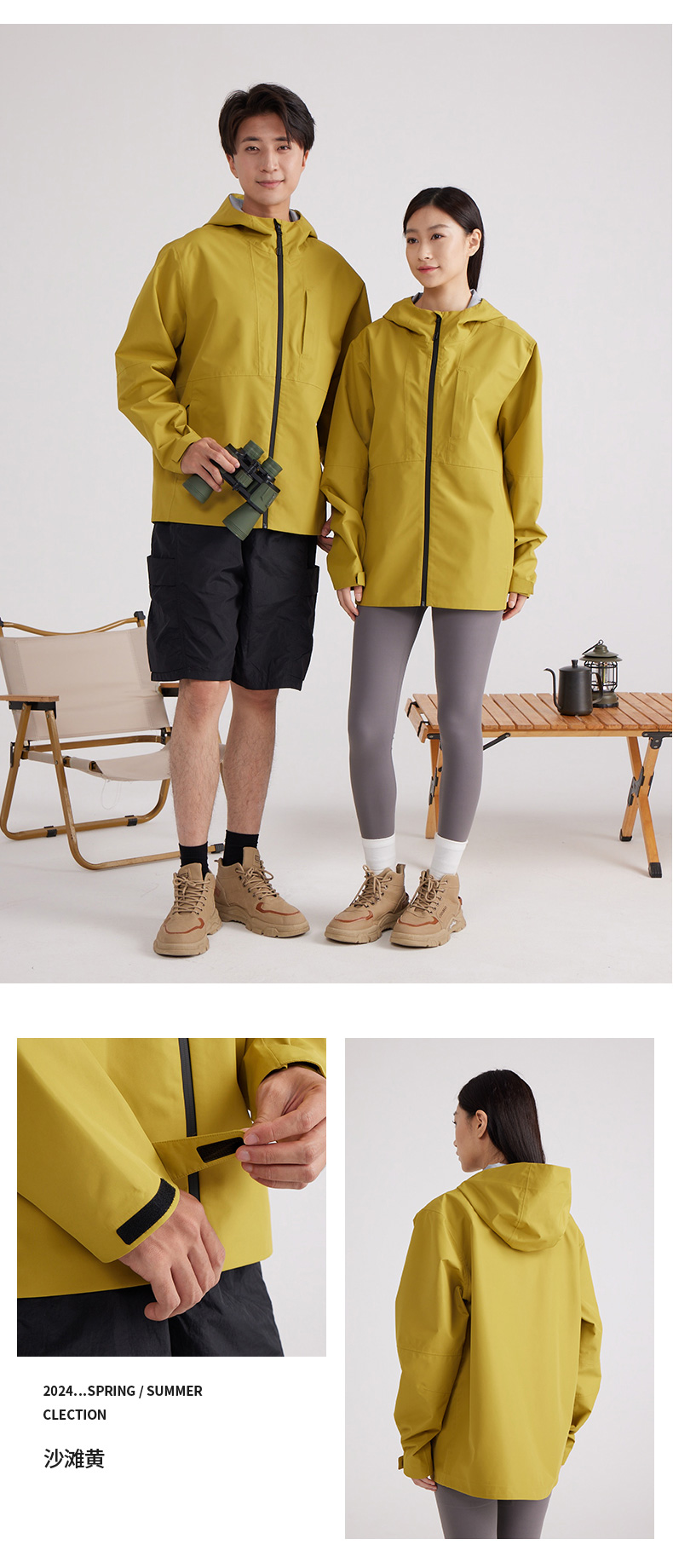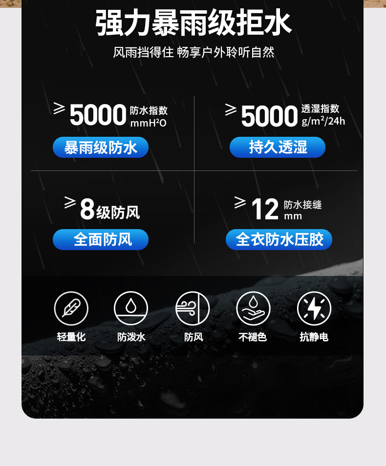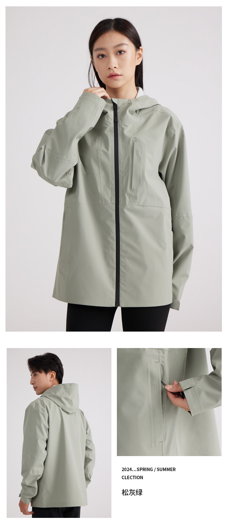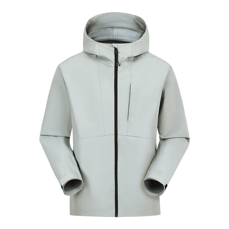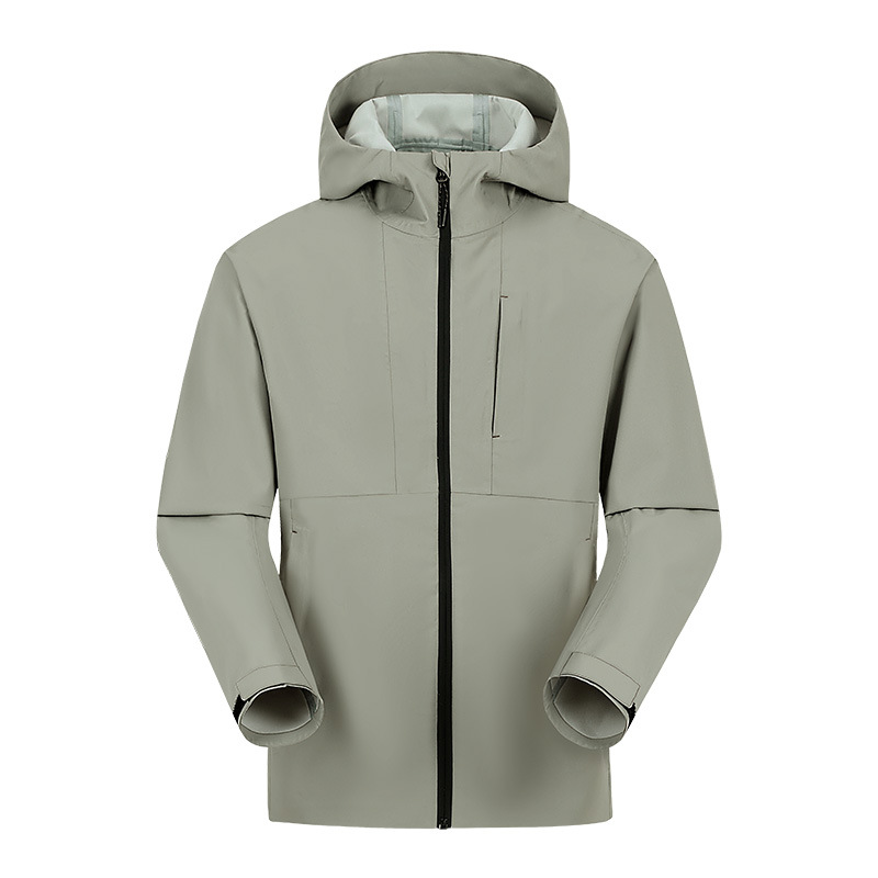 设计点:70D高密三合一面料 不易褪色变形全衣缝位热封压胶,3D版型裁剪静水压、透湿率5000+,四级防泼水RBR品牌科技防水拉链,严密防水轻量化科技硬壳,行动自如无束缚感.