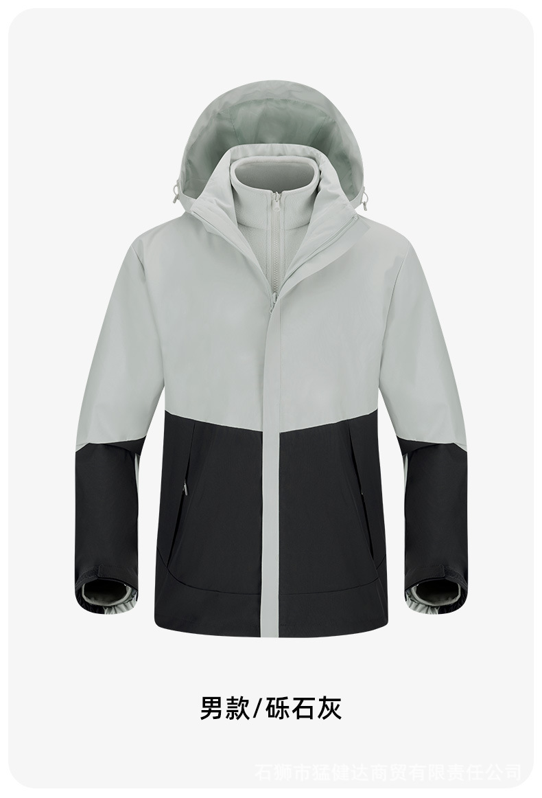 设计点:柔肤棉高弹面料,不易褪色变形防泼水四级,防风保暖更舒适外套内胆可拆卸组合,一衣三式穿YKK品质拉链,经久耐用顺滑不卡壳360g亲肤银狐绒内胆,抗静电科技.