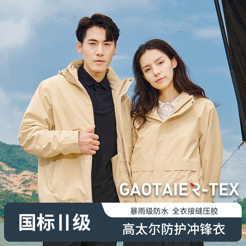 设计点:75D双股棉感小牛津,不易褪色变形GAOTAIER-TEX高太尔科技面料防水指数10000,透湿指数7680全衣缝位热封压胶,国家二级冲锋衣380克银狐绒抗静电内胆,YKK拉链。