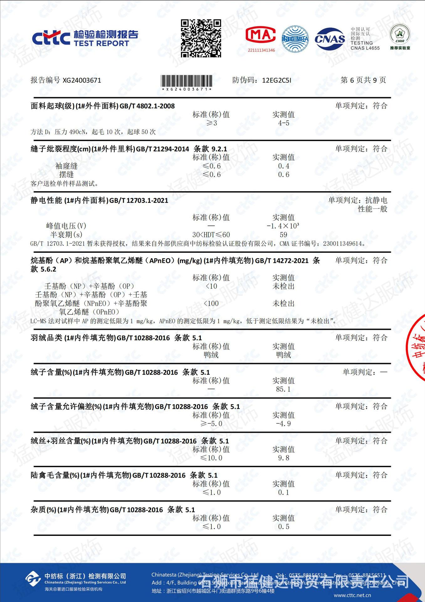 材质:面料:100%聚酯纤维 里料:100%聚酯纤维 填充物:90%鸭绒