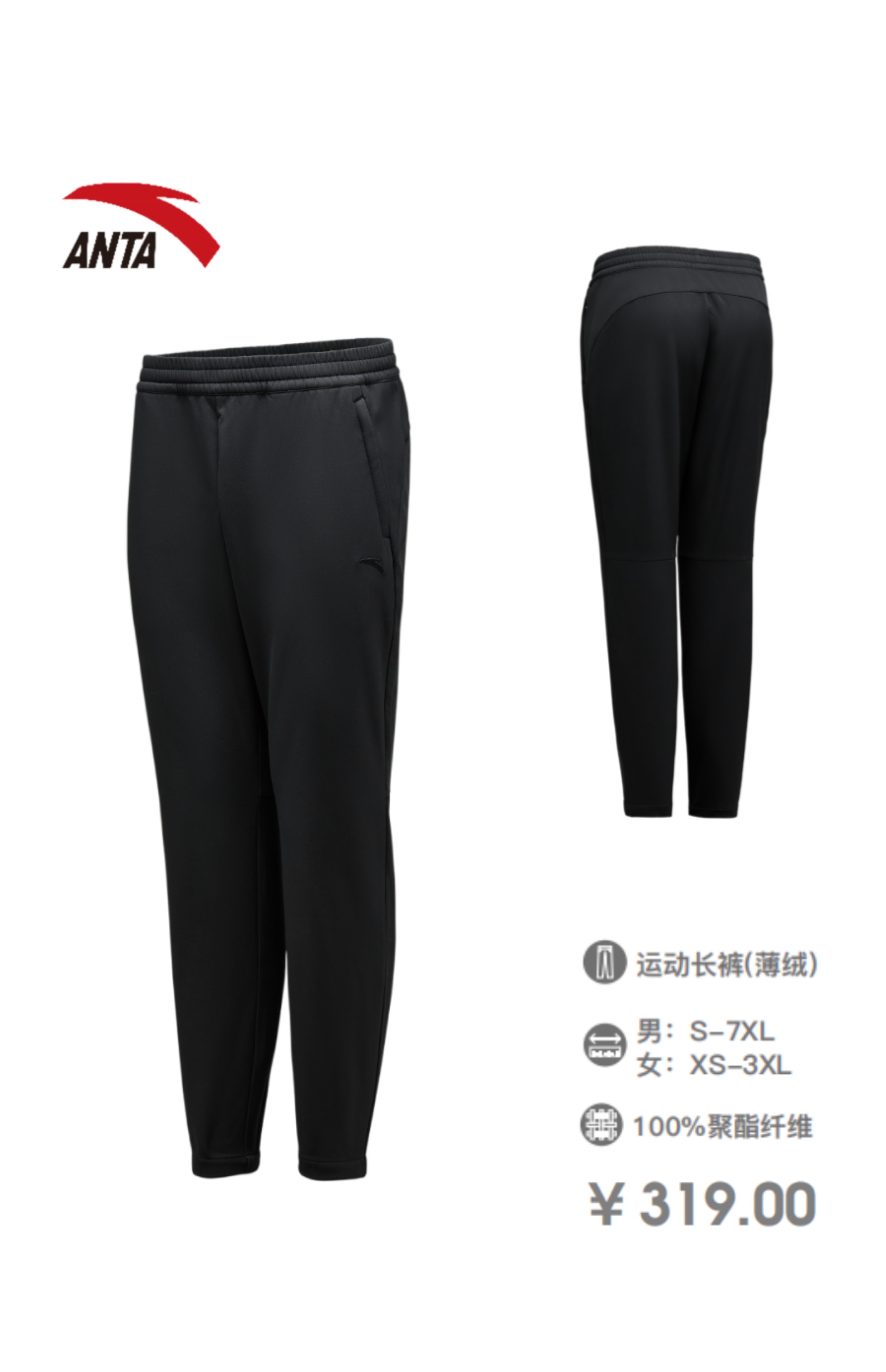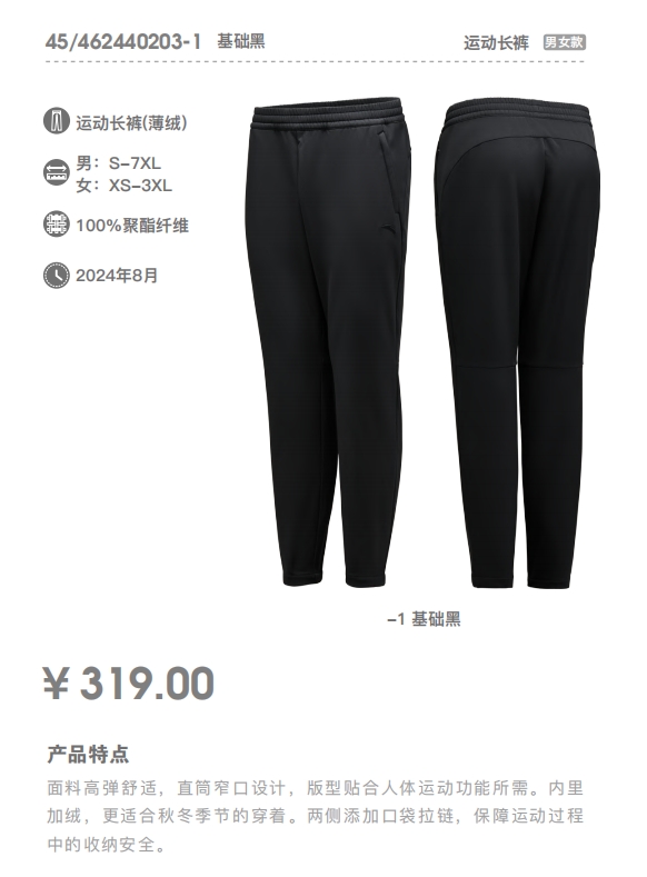 设计点:面料高弹舒适,直筒窄口设计,加绒,更适合秋冬季节的穿着。两侧添加口袋拉链,保障运动过程中的收纳安全.