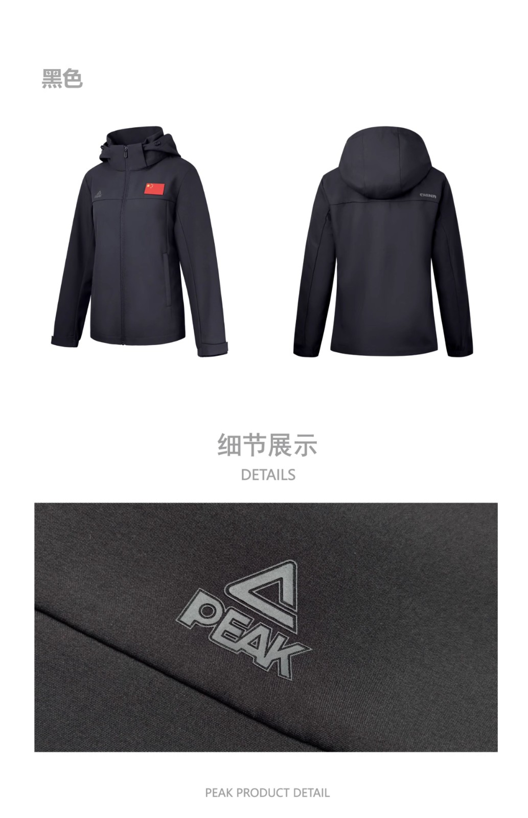 设计点:整体廊形简约质感。搭配可拆卸帽设计,更贴合头部轮廊,适合更多穿着场录。前胸国旗魔术贴及后背"CHINA"印花,彰显爱国情怀。