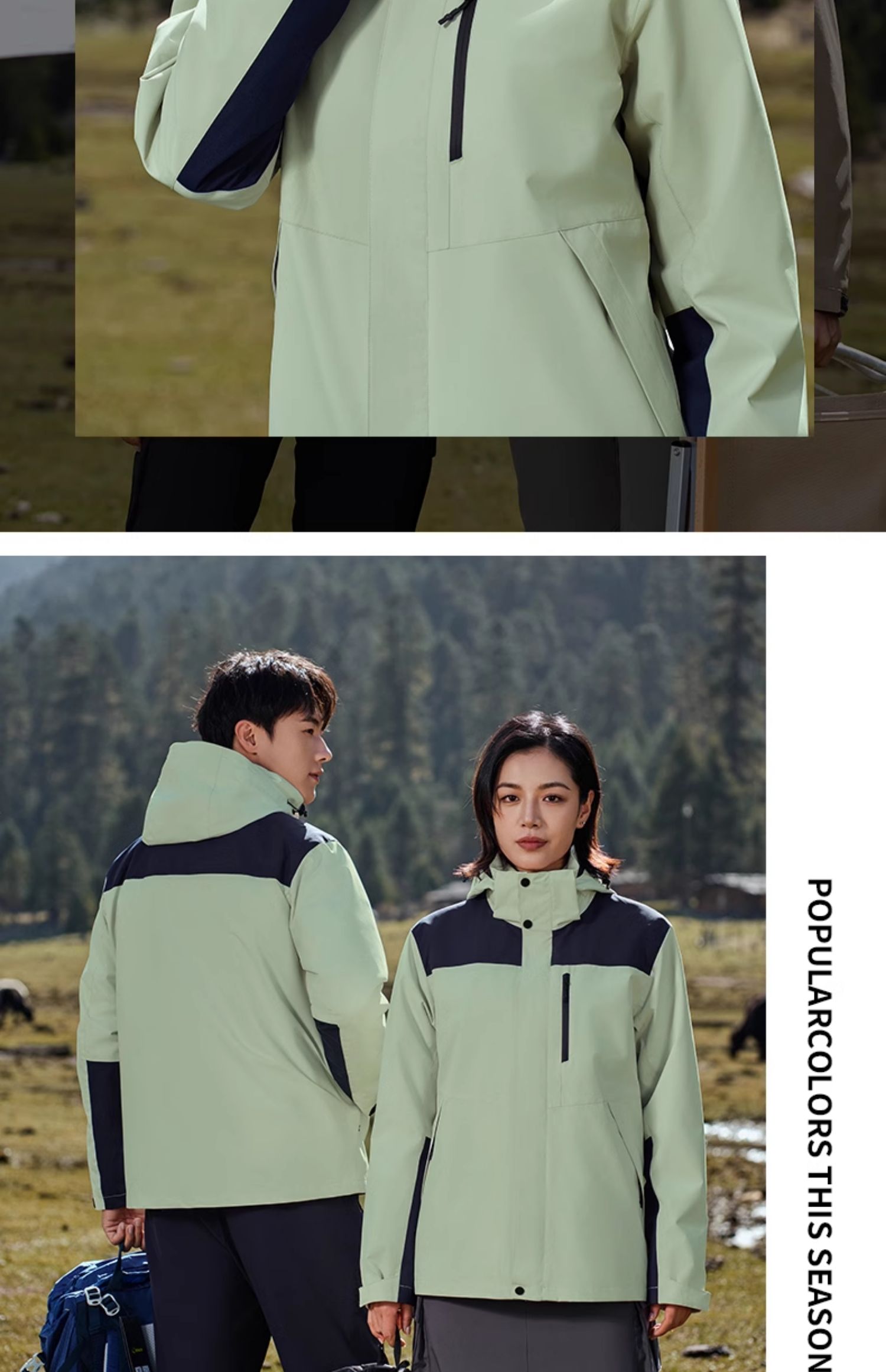 设计点:跟色银狐绒内胆,正品YKK正品拉 链,连帽设计款式防风防泼水。