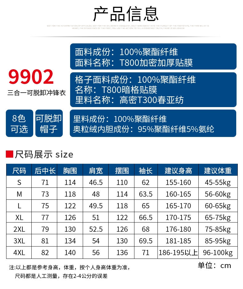 设计点:跟色奥利绒内胆/YKK正品拉 链/精细半烫无缝压胶科技/科技夜 光口袋/真立体袋工艺。