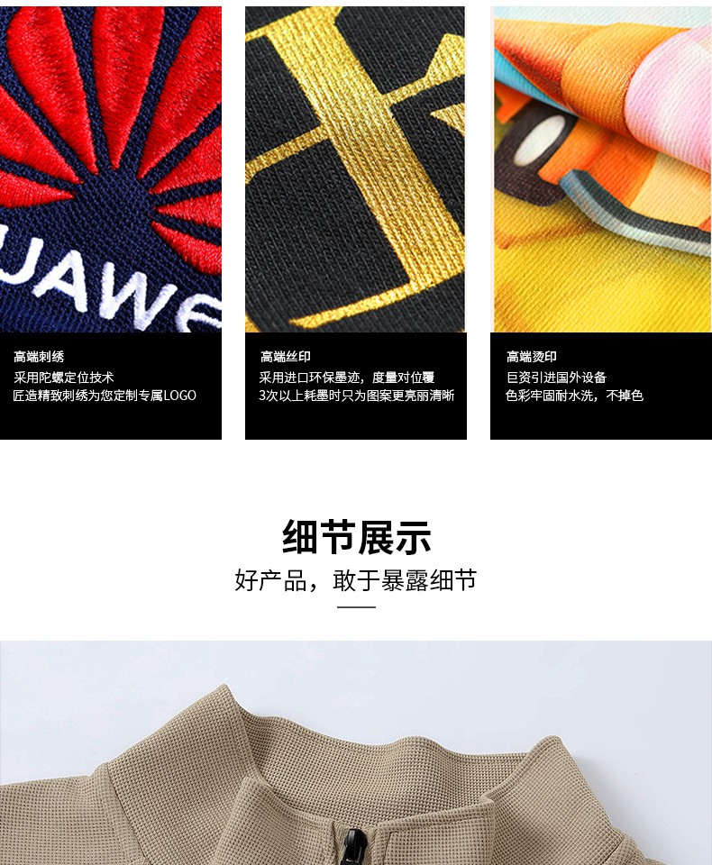 设计点:支持丝印、机绣、烫画、直喷的等加工工艺。