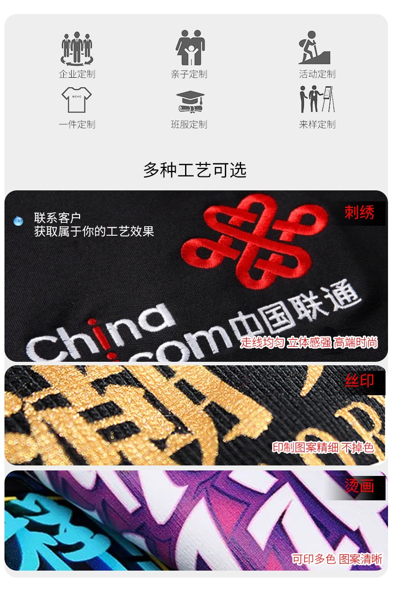 设计点:支持丝印、机绣、烫画、直喷的等加工工艺。