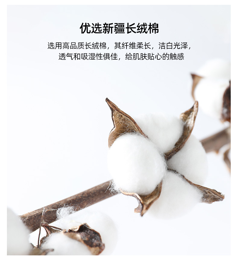 工艺:选用高品质长绒棉,其纤维柔长,洁白光泽,透气和吸湿性俱佳,给肌肤贴心的触感