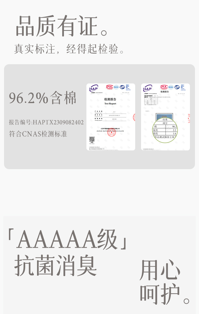 工艺:176N,40S、紧密赛络纺、IV级抗起球、手工缝合、3A抗菌