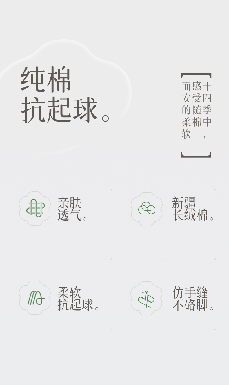 材质:95.2%极致抗起球纱线 2%氨纶 2.8%锦纶