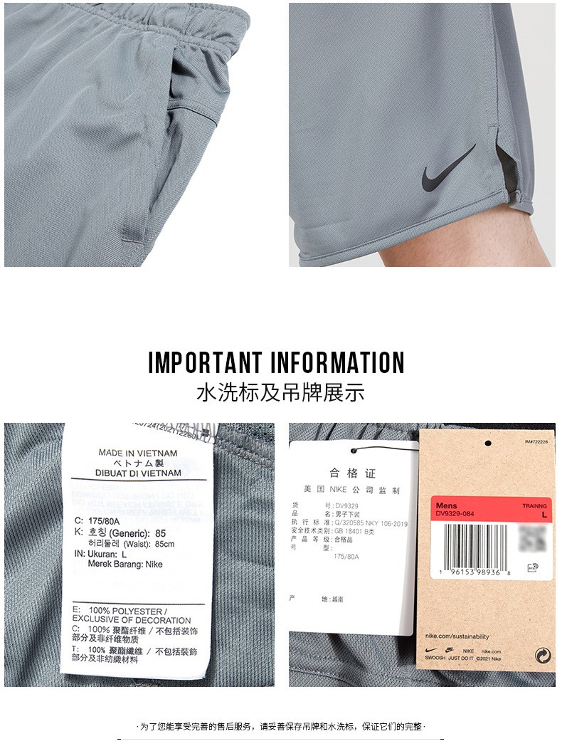 工艺:无衬里短裤,针织面料柔软顺滑,结合裤脚开衩设计,Nike Dri-FIT 技术,插手口袋