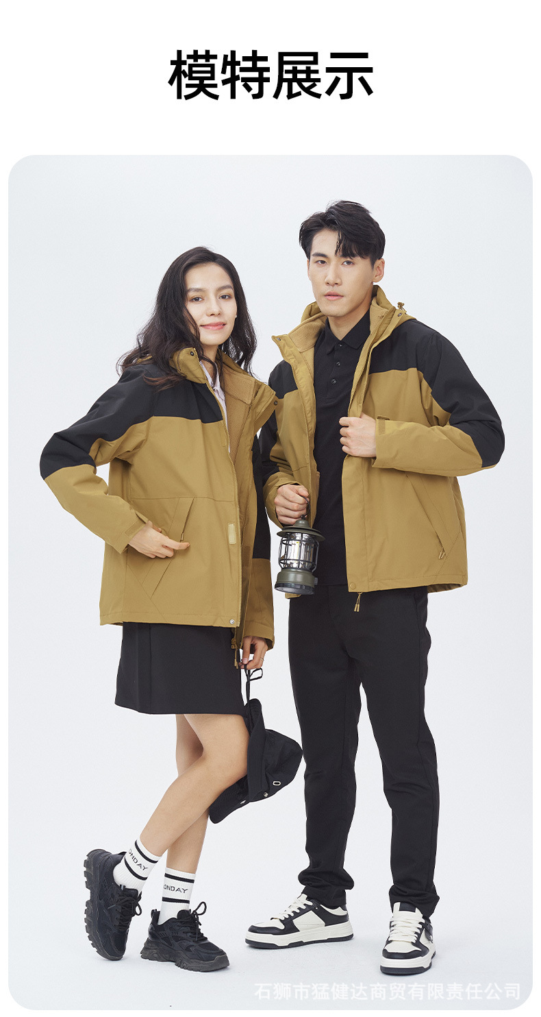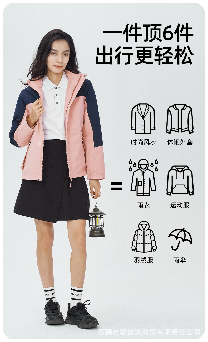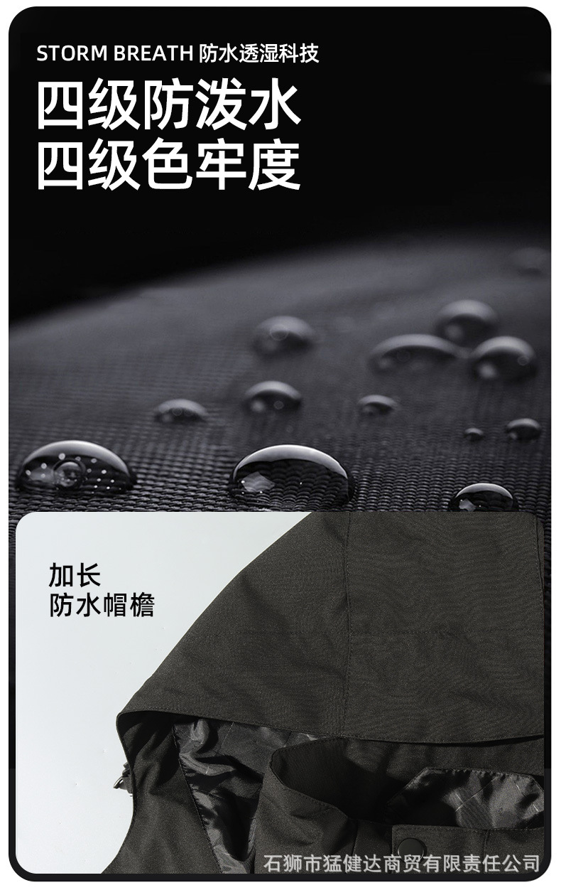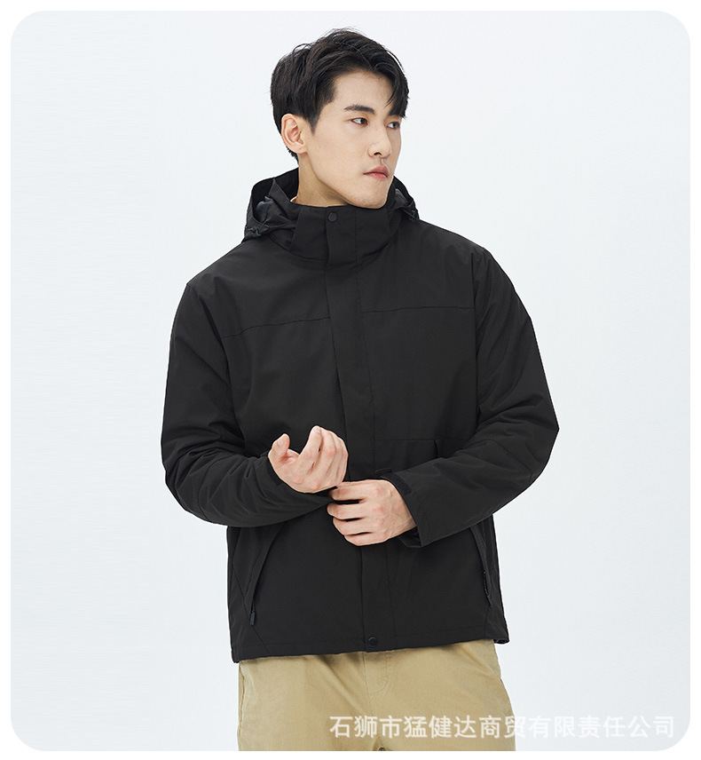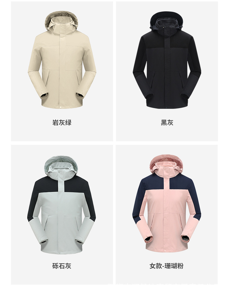 工艺:150D高弹单经双纬小牛津面料杜邦四防科技,防水防风、防油防污外套内胆可拆卸组合,一衣三式穿YKK品质拉链,经久耐用顺滑不卡壳内胆袖里加衬布,舒适亲肤穿脱方便320克超细摇粒绒内胆,抗静电科技