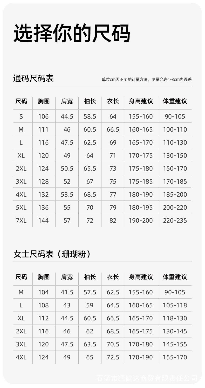 尺码:通码220805 S-5XL、7XL/女款220806 M-4XL