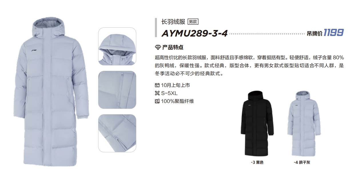 产品特点:超高性价比的长款羽域服,面料舒适且手感综软,穿着挺括有型。轻便舒适,域子含量80%的灰鸭域,保暖性强。款式经典,版型合体,更有男女款式版型贴切适合不同人群,是冬季活动必不可少的经典款式。