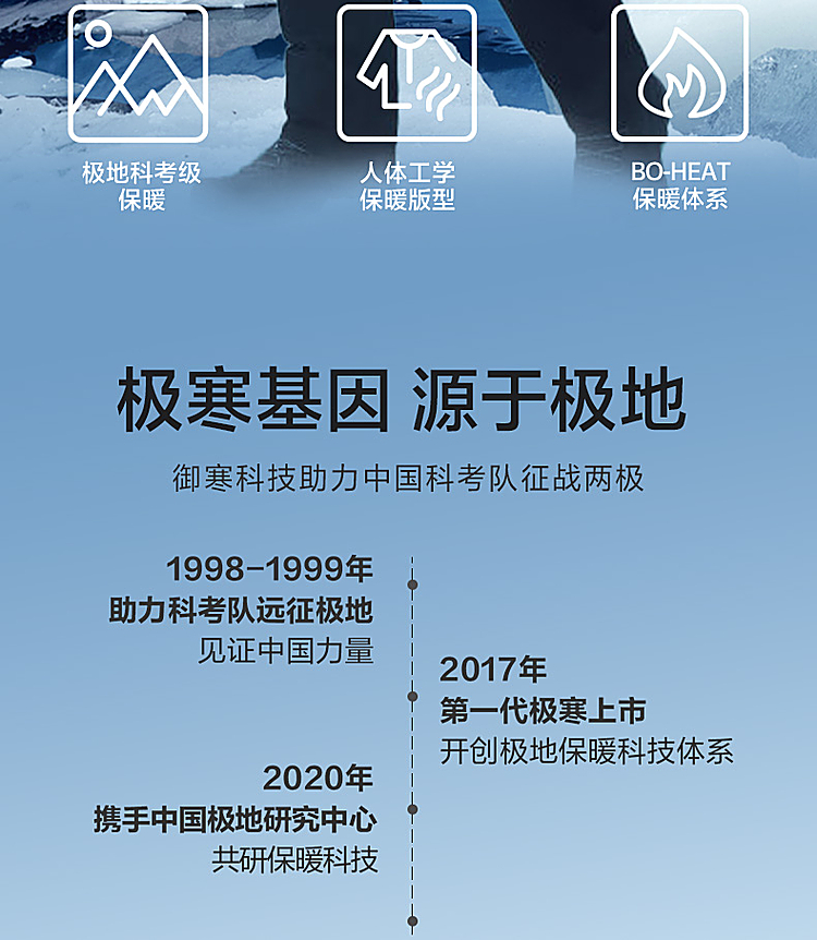 功能科技:BO-HEAT保暖科技,蓄热内里升温2.5°C.700+品质鹅绒