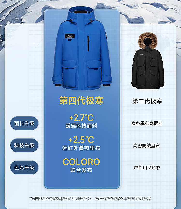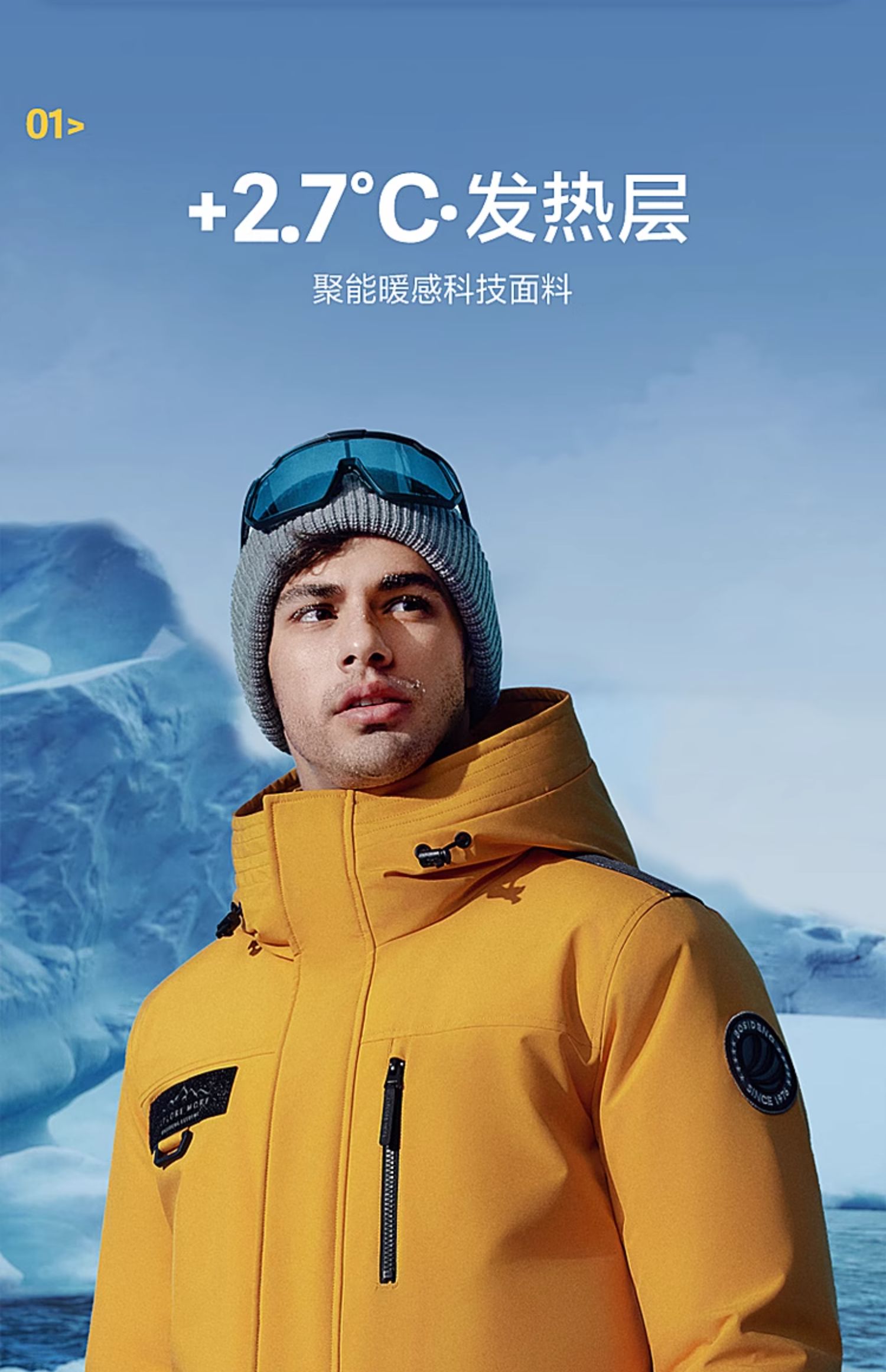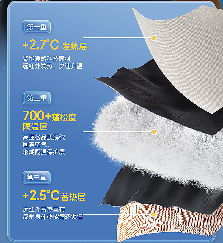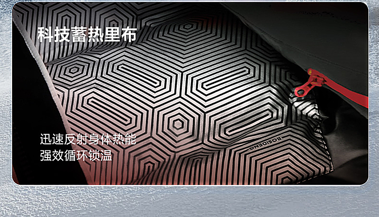 功能科技:BO-HEAT保暖科技,75D聚能巢远红外蓄热面料升温2.7°C,远红外蓄热内里升温2.5°C